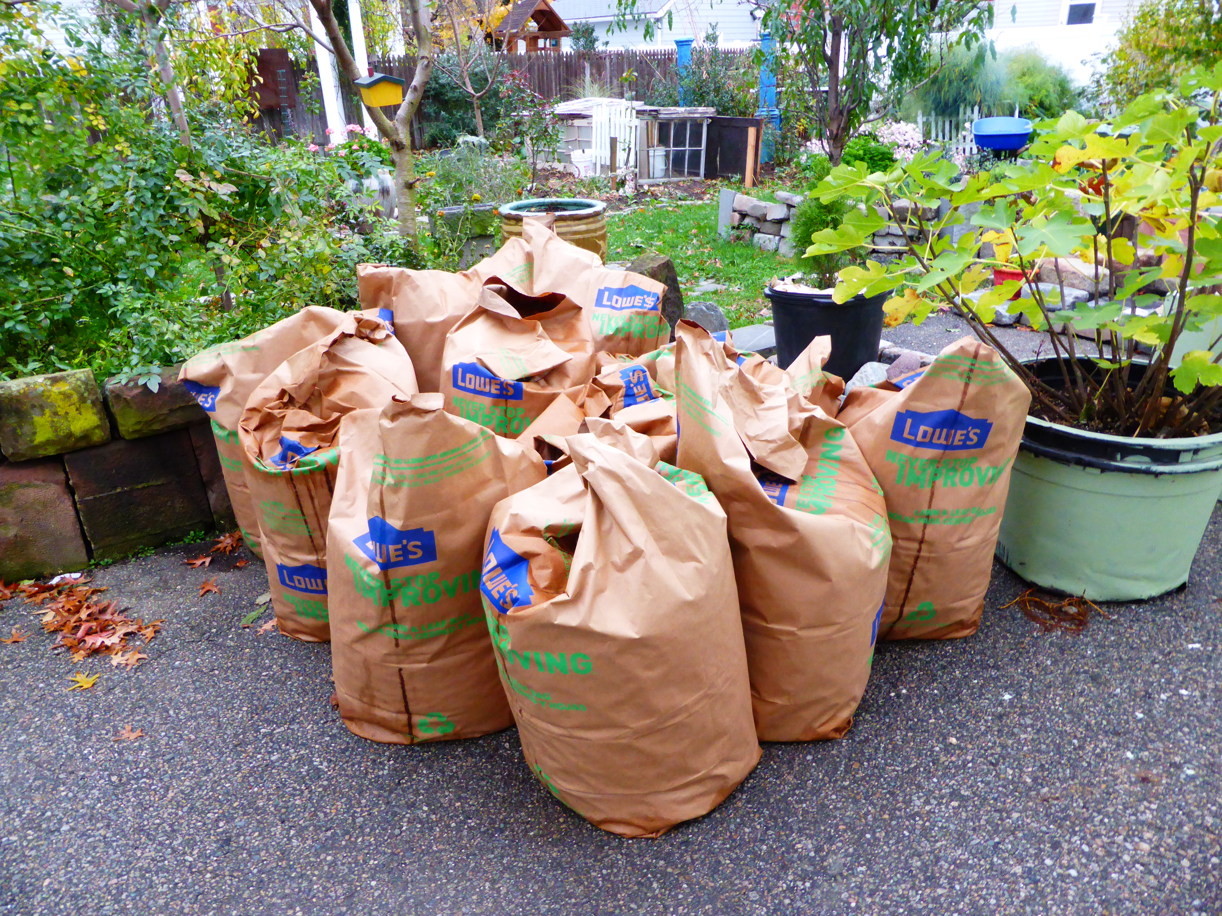 I have gathered every brown bag of leaves my friendly neighbors have collected from the enormous red oaks a house or two down our short side street. A dozen here, a dozen there made the short trip down to the far end of the driveway. Squat and silent, they are egg like, each laid by New England hens hunkered down for the winter. It’s a lonely job, combing the juxtaposed sidewalks decades apart in the making. Yet very satisfying. And I confess, I cannot resist raking the sidewalk under the street light. For this task I pull out the sturdy painter’s canvas, laid wide impervious to passing traffic and like silent gravity, powerfully strong.