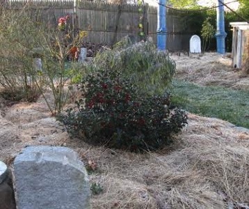 Hollies have long lifespans. They form dense root systems important to keep in mind. Their preference for soils of modest fertility, semi-shade, moist but well drained sandy or gravelly glacial moraine deposits are reminders that fertilizers and deep mulches are not required. They are valiant. Deep shade is not their forte, they will establish themselves alongside buildings that cut off sunlight, and any east or western perspective is good, southern direct exposure to sunlight may discourage them. Hollies are virtually pest free and not preferred by common garden varmints such as woodchucks, raccoons or skunks who have adapted to urban life.