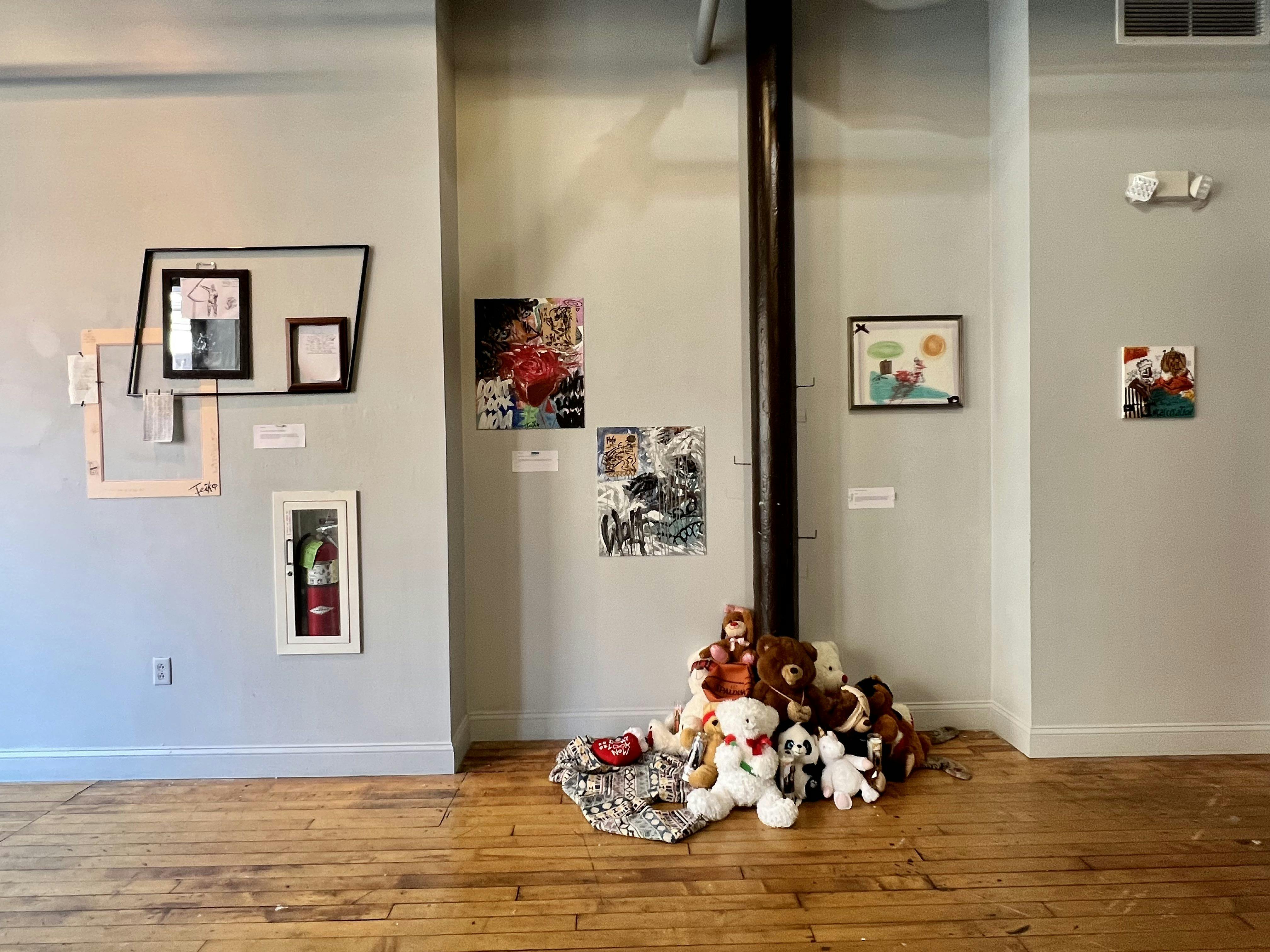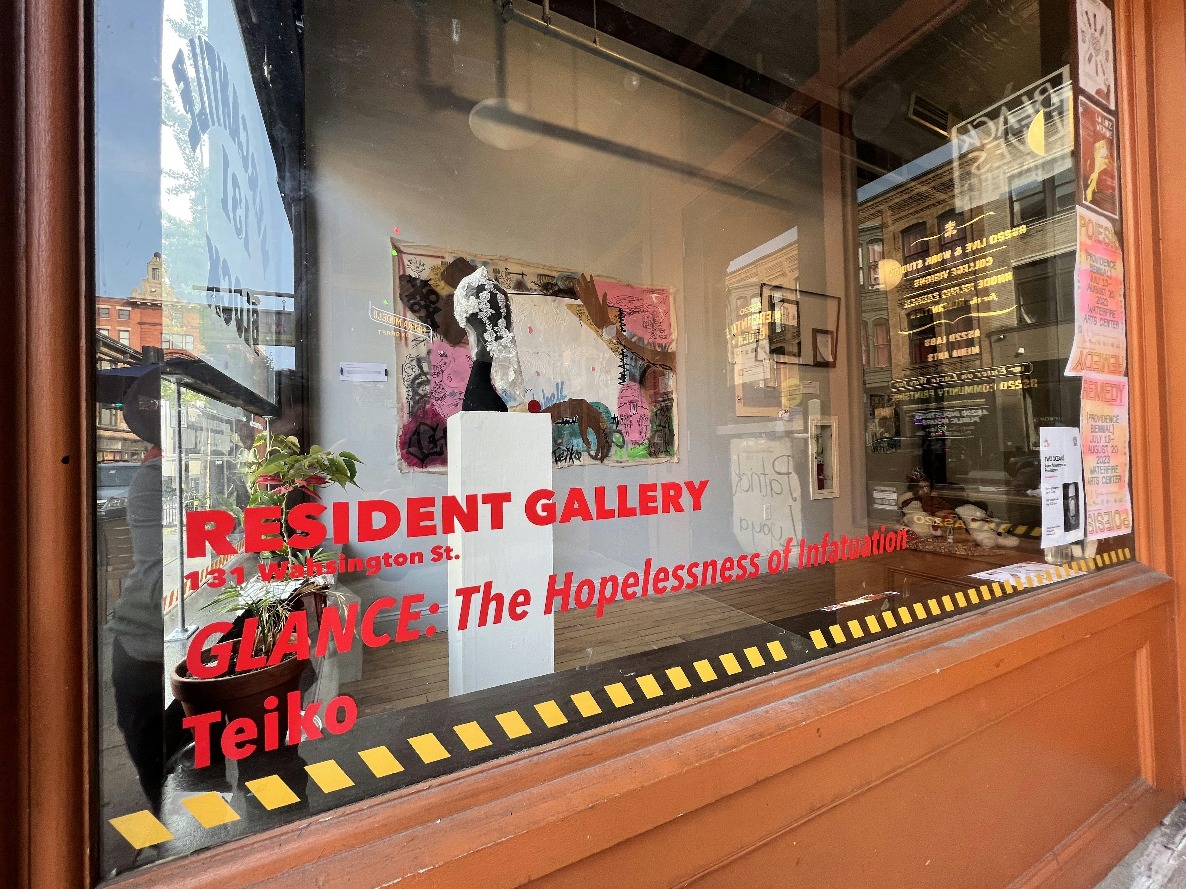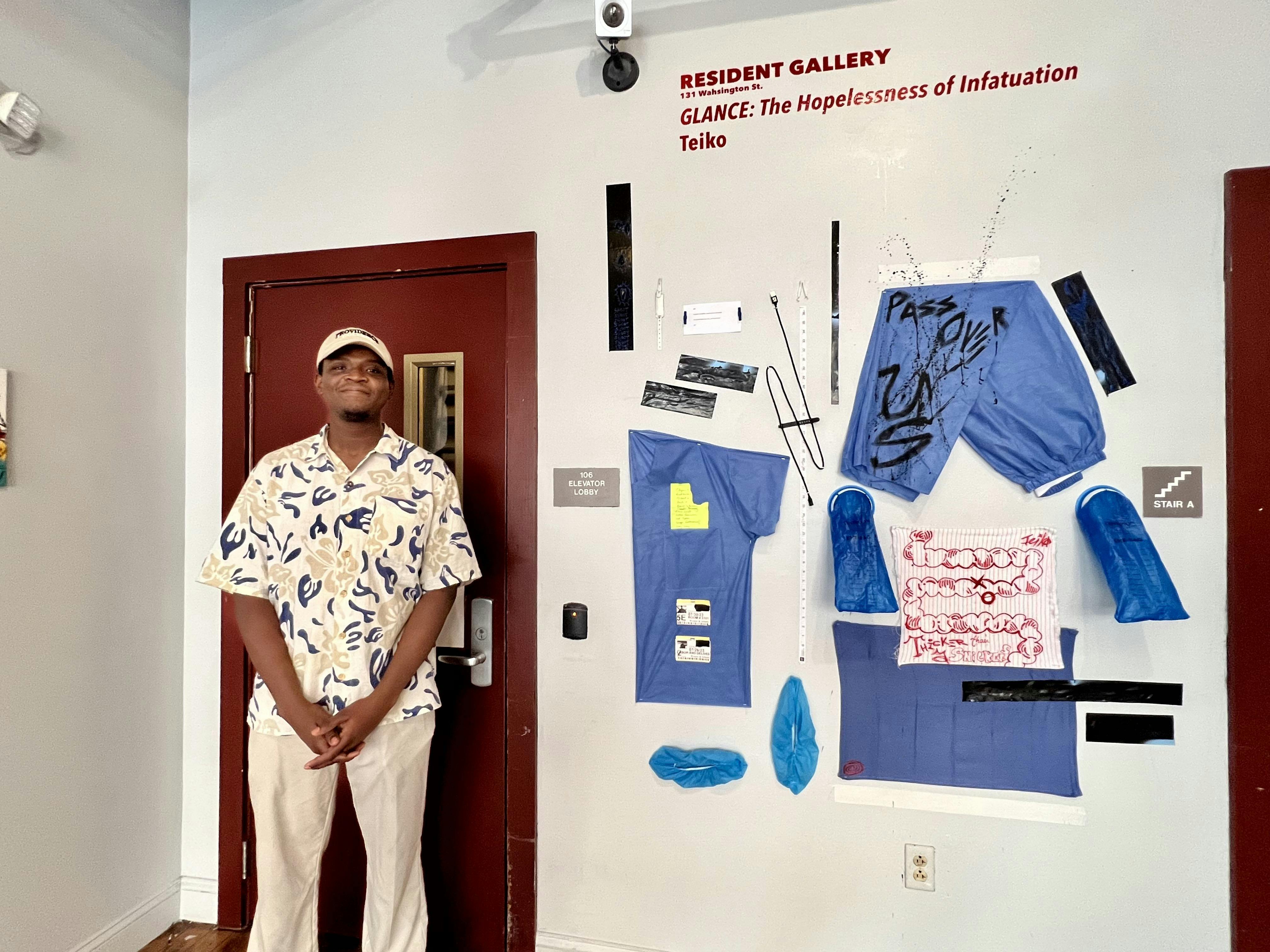 Through August 31, 2023, Teiko is sharing a new body of work in AS220’s Resident Gallery at 131 Washington Street in Providence. The collection is immersive and includes discrete paintings as well as complex collages and pieces that act as installations activating the space. It is a body of work that he has spent a number of months creating and brings together a variety of his artistic interests that all hinge on ideas of affection.
