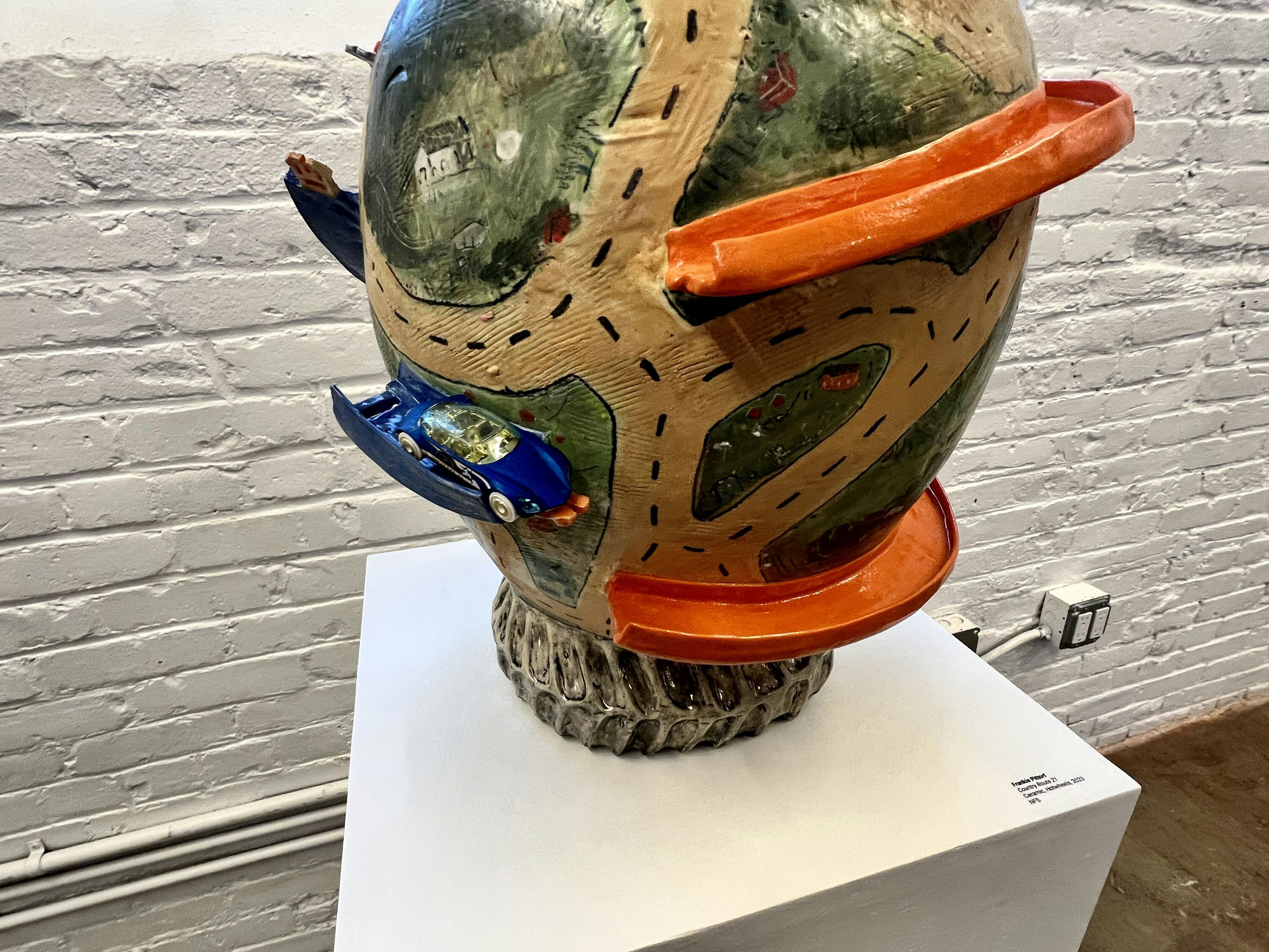 Frankie K. Pittorf’s ceramic work is poignantly autobiographical and offers connections to others who have shared experiences. Their art is also full of the recognizable language of youth, making it resonant with a broad audience. Utilizing an aesthetic that is all their own, Pittorf has established a unique creative voice. They are an artist to watch.