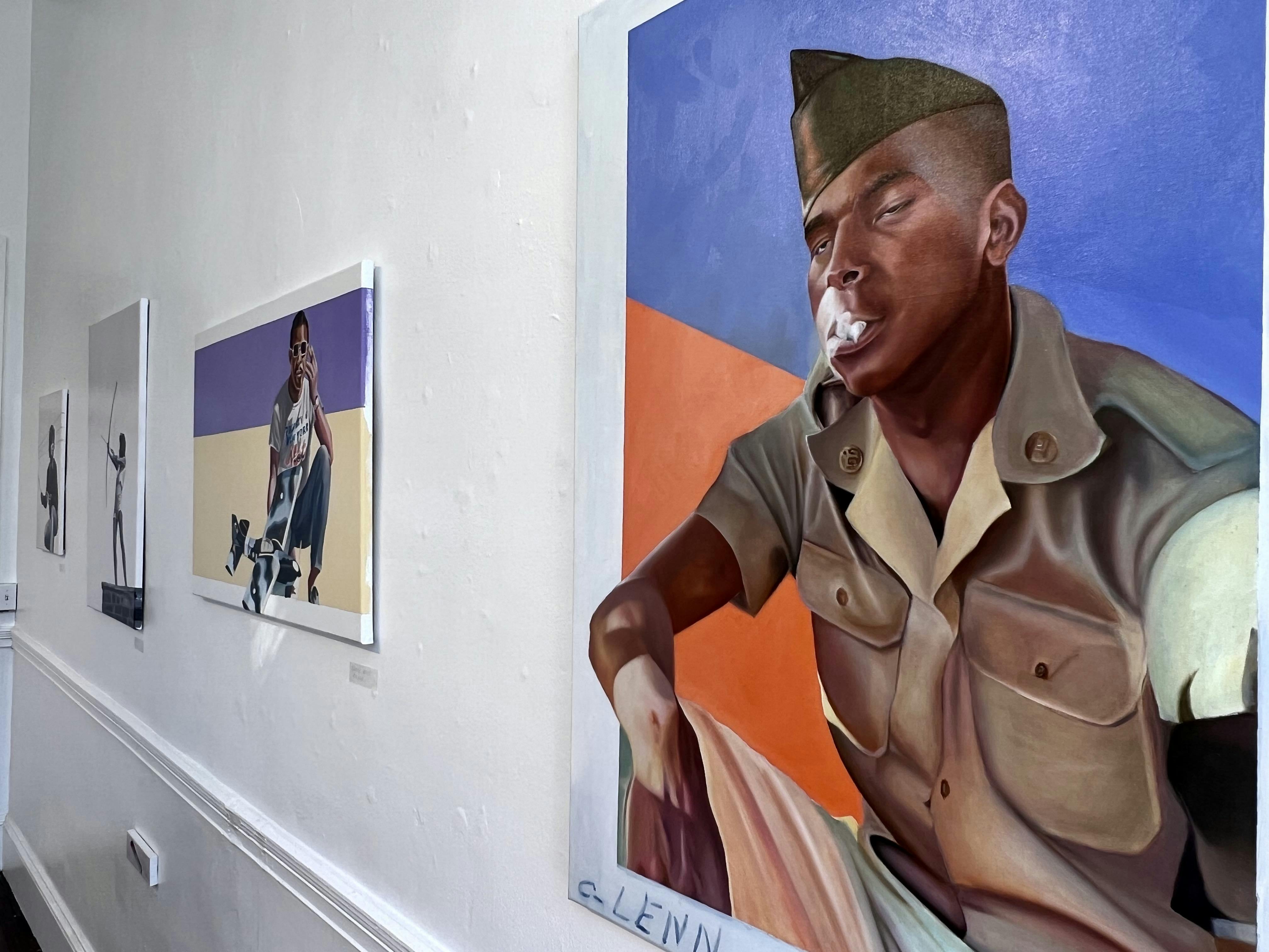 Much of Bryan’s work is imbued with personal meaning, hence the exhibition title. Four of the paintings on view in her show at World’s Fair Gallery feature family members. Painted based on images from her family archive, each piece captures a meaningful sense of personality for its sitter. In one image, Bryan depicts her uncle Glenn, who passed in 2020, in the form of a snapshot taken during his time in the military. She transposes both his portrait and the handwritten notation from the border of the image. While these works are full of resonance for their maker, they also offer lessons to viewers.