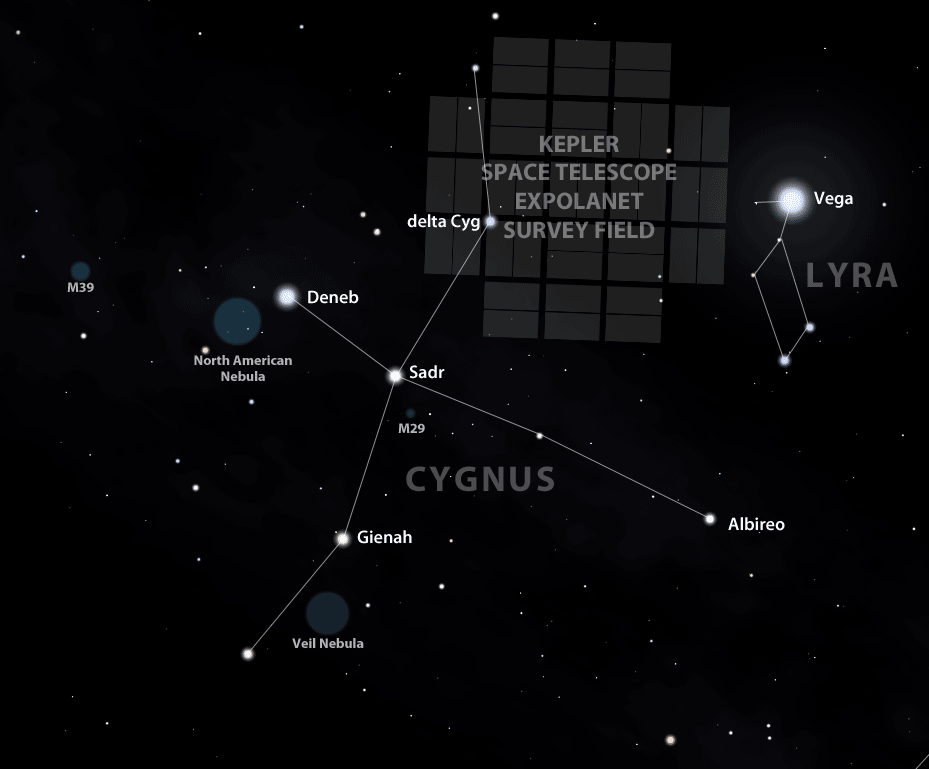 And finally, stars in a region straddling the Cygnus-Lyra border were the target of the Kepler Mission’s search for habitable exoplanets (extra-solar planets). Launched on March 7, 2009, the Kepler telescope found more than 3,845 candidate worlds. To date 966 have been confirmed. And this search covered a very tiny fraction of the sky. When I was growing up we only knew about the nine planets of our solar system. In grade school and high school during the 60’s and early 70’s, planetary formation was thought to be an exception. No longer.