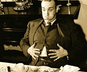 Take your partner out to dinner to a fairly nice—but busy—restaurant and sit so that he is facing you and your back is to a mirror-less wall. During the course of the meal, from time to time say something along these lines, "Oh, that man in back of you is really gross. He's talking while chewing. It looks so pigish." Then a little later on say, "Don't look, but I wish you could see him talking and eating with his mouth open. Now he's got food on his chin!" Then say, "Gosh, if you ever see me that drunk and eating like that chewing with my mouth open, I hope you'll give me the heads up." If what you're saying still doesn't register, finally say, "Why don't we have a word we use to signal to each other when we have food in our teeth or are chewing with our mouth open? How about 'oink?'" ~Didi