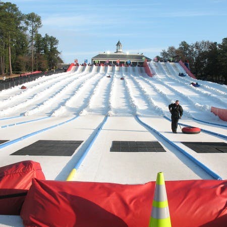 When many people think of northeastern Massachusetts, they think of the beaches and dunes. Well, the town of Amesbury boasts something a little different: Amesbury Sports Park. During the winter, they are 100% dedicated to snow tubing fun on their lanes—the hill is the steepest tubing hill in the state.
