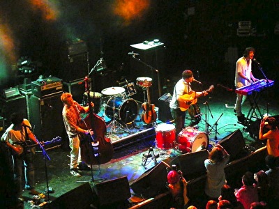 Dawes from Los Angeles wowed the crowd with their unique brand of rock & roll with Taylor Goldsmith singing lead vocals and strumming a mean six-string, his brother Griffin and his blonde afro pounding on the drums, Wylie Gelber slappin' the bass and Tay Strathairn on the keys. They kicked off their set with "If I Wanted Someone", a fantastic track off of their most recent album, Nothing Is Wrong. They then strolled on through with "Time Spent In Los Angeles", "Fire Away" and "A Little Bit Of Everything" until the unexpected happened.