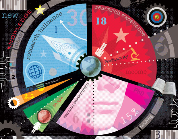 • Citations — research influence (worth 30 per cent)