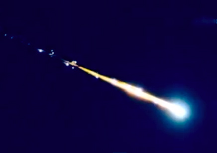 A meteor is simply a shooting star, a fleeting fiery streak in the sky produced by a meteoroid, a small piece of interplanetary debris, colliding with the Earth’s atmosphere, 30-80 miles above us. The brightest meteors have a strong green hue, which is believed to be due to the atmosphere's oxygen reacting to the passage of the meteor.