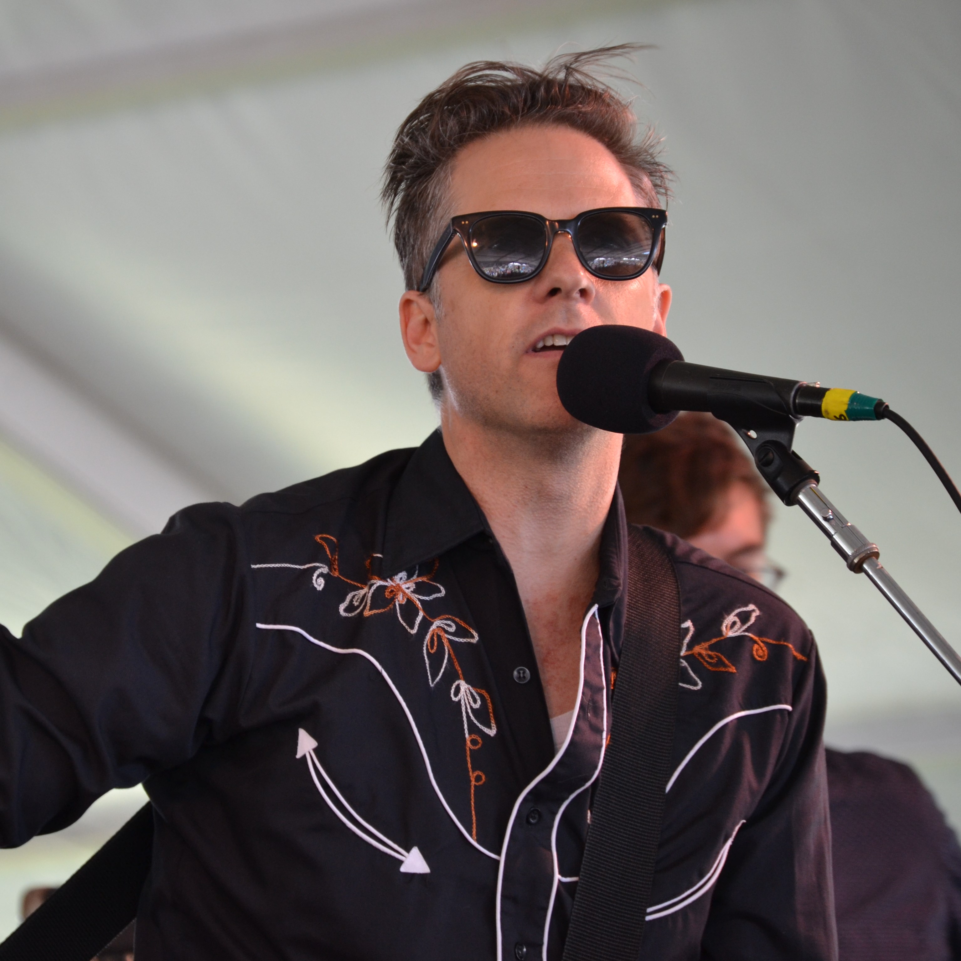 Calexico brought their unique Tex-Mex sound to the Quad Stage mid-afternoon. Leader Joey Burns (pictured) brought his smooth vocals and the horn section led by Valenzuela rocked the Fort. In their third visit to Newport,the band was joined on two songs by Sam Beam and Ben Bridwell.