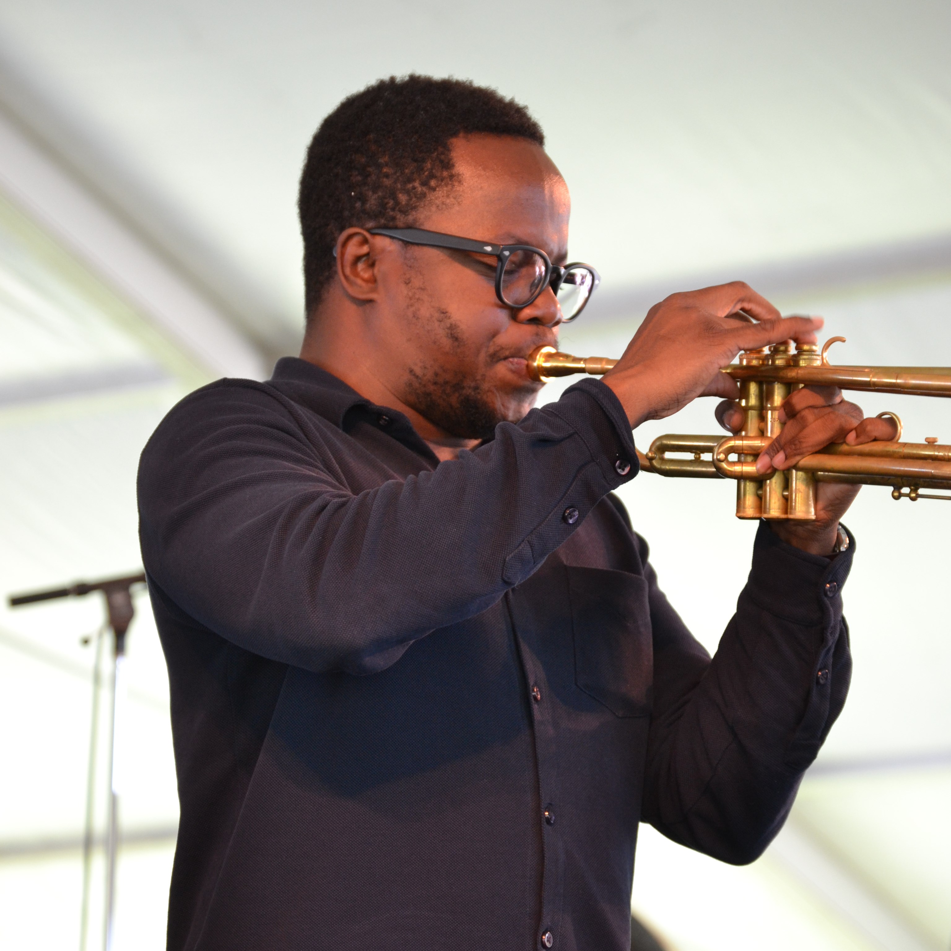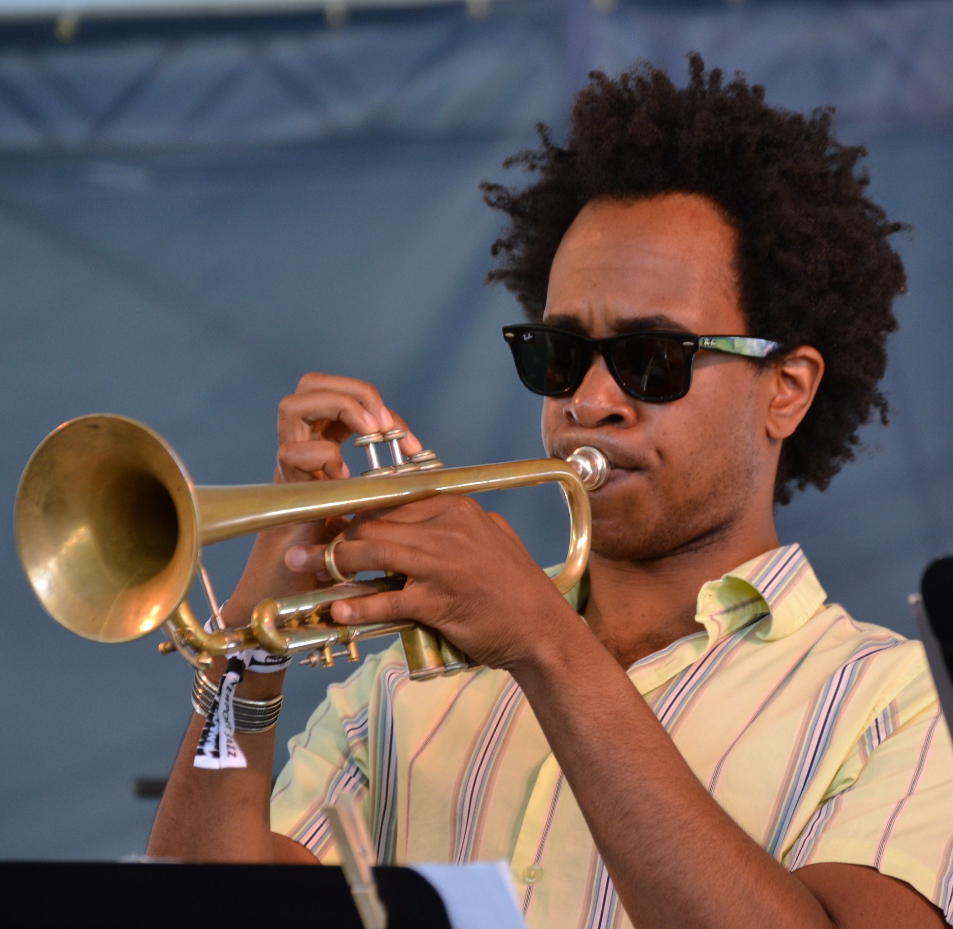 Trumpter Ambrose Akinmusire is a rising star in the jazz world. He christened the Quad Stage with his quartet Friday opening with "Roll Call for Those Absent." His set included covers and originals like "As We Fight." (Photo: Ken Abrams)