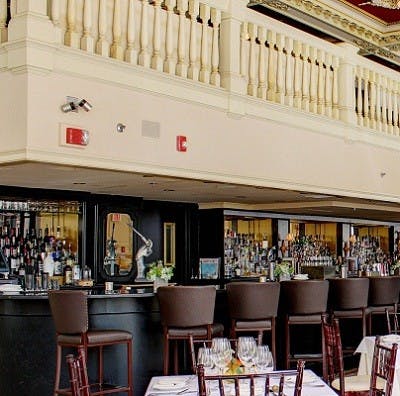 Right in downtown Providence, the Dorrance exudes romance with its elegant decor of the past. Located in an old building on Dorrance Street that used to be a Federal Reserve Bank, it has high and ornate ceilings, warm colors, marble floors and walls and an elegant wooden bar in the center.
