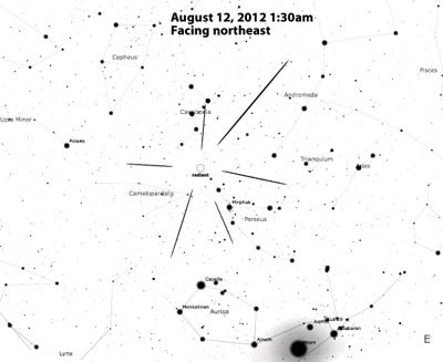GET THE LATEST BREAKING NEWS HERE -- SIGN UP FOR GOLOCAL FREE DAILY EBLASTPerseus is well up in the northeast sky after midnight. If you can see a pattern of stars that looks like a sideways “M” or “W” (that’s Cassiopeia), Perseus is below it so you’re looking in the correct direction.