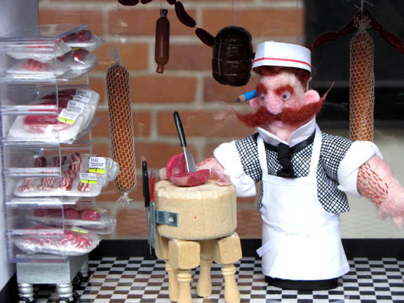 "For a lot of girls/women, I'm sure, there is a fondness for all things doll-housey. I suppose I had this feeling towards dollhouses too, growing up, but more so with the town named 'Beetlegrass' that lived on my dresser. It was the bigger scope of LOTS of families - not just one - lots of things going on, with tons of things that needed to be made that got me going back then, and which still 'has' me, inspiring me to create the many scenes in the Children's Museum display."