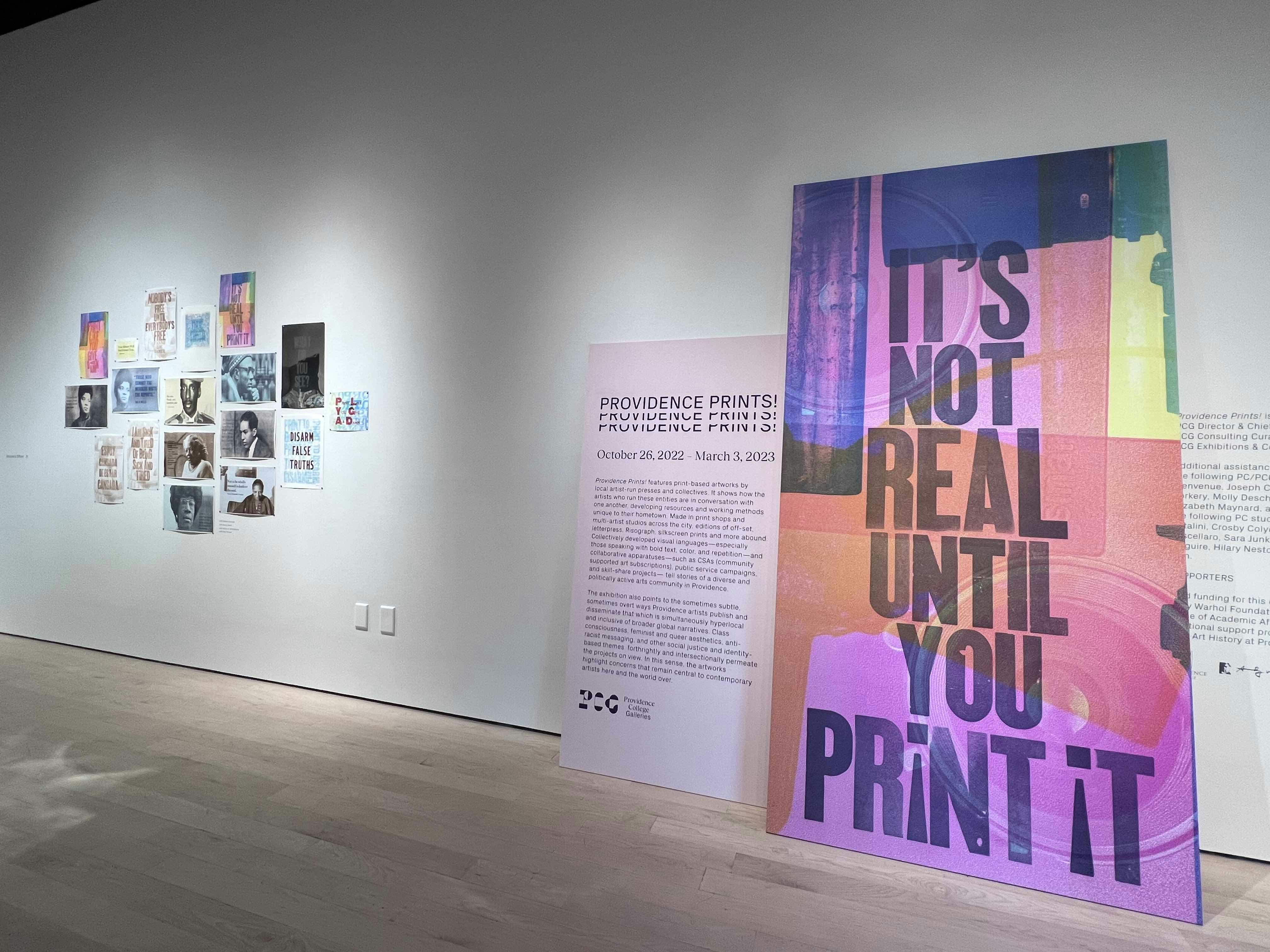 Speaking of Bidon, PC Galleries’ Director and Chief Curator Jamilee Lacy says, “It seems like all Providence artists who print have a story about Jacques’ generosity and impact on their creative practice. Indeed, we realized that every single artist and collective in our Providence Prints! show had learned from and/or collaborated with Jacques at one point. So, we decided to feature him prominently, and even blew up one of his artworks to create our title wall.”