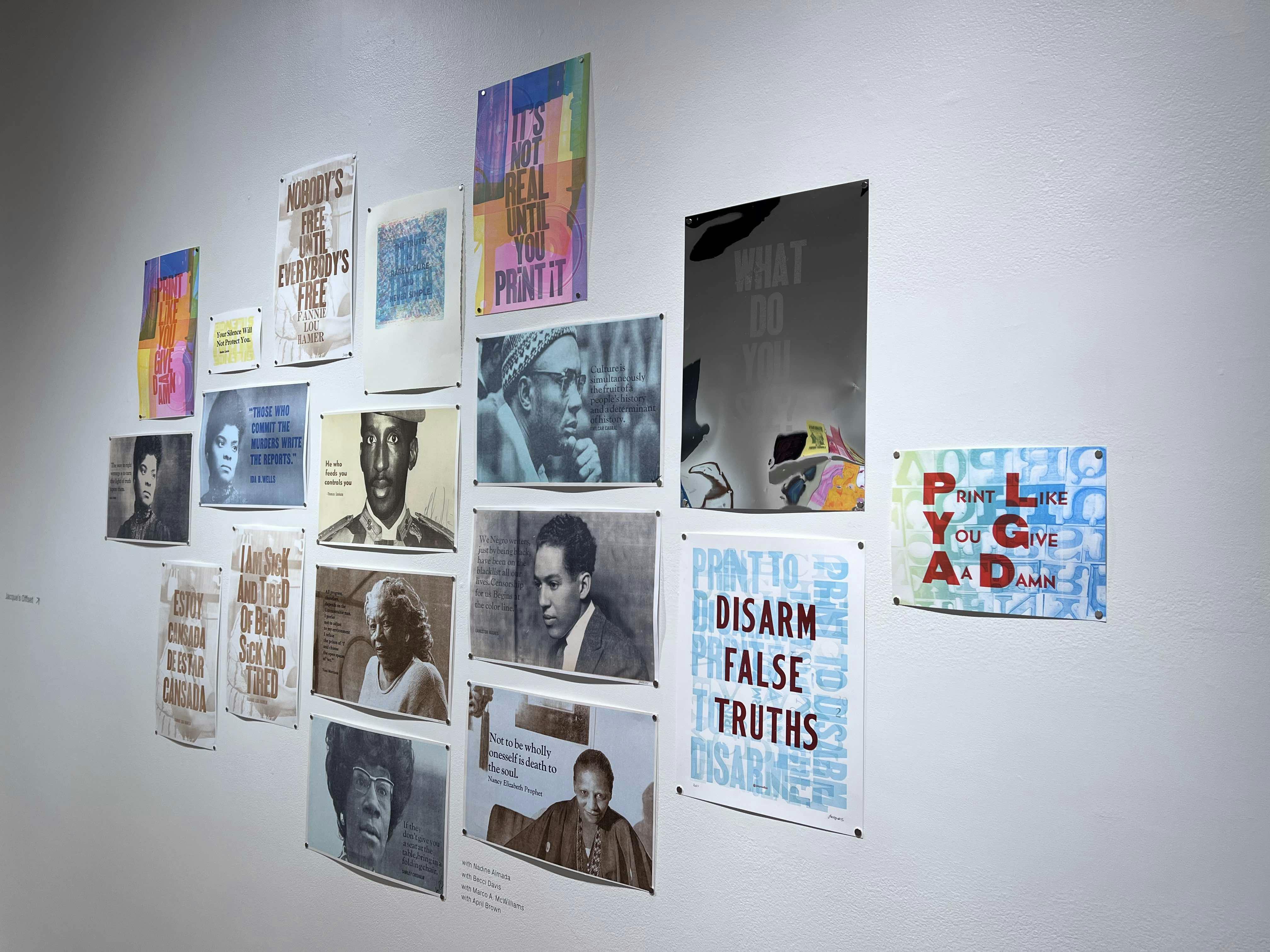 Bidon’s contributions to The George Stinney Project are full of thoughtful references that cut to the core of his purposes. Quotations from the likes of James Baldwin are fused with images through both letterpress and offset lithography processes. The results are elegant and defy categorization as either straightforward artwork or political poster. They also share important content within a community space.