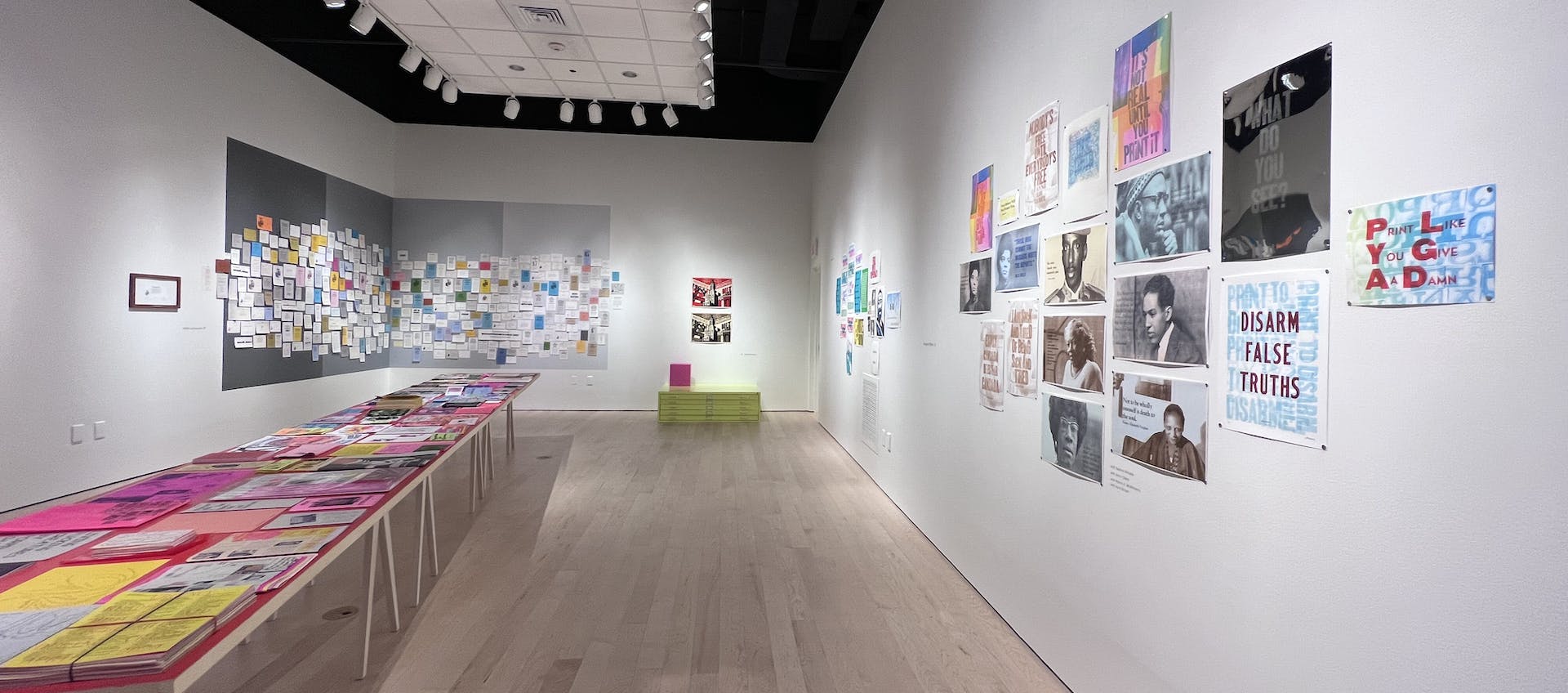 On view through January 18, 2022, in the Main Gallery at City Hall in Providence, a selection of Bidon’s prints can be found in the exhibition The George Stinney Project. Shown alongside work by Baub Bidon and Marco A. McWilliams, Bidon’s printmaking is part of a project that explores the 13th Amendment. Typical of Bidon’s work, the pieces on view at City Hall incorporate image and text to create artworks that speak to their viewers.