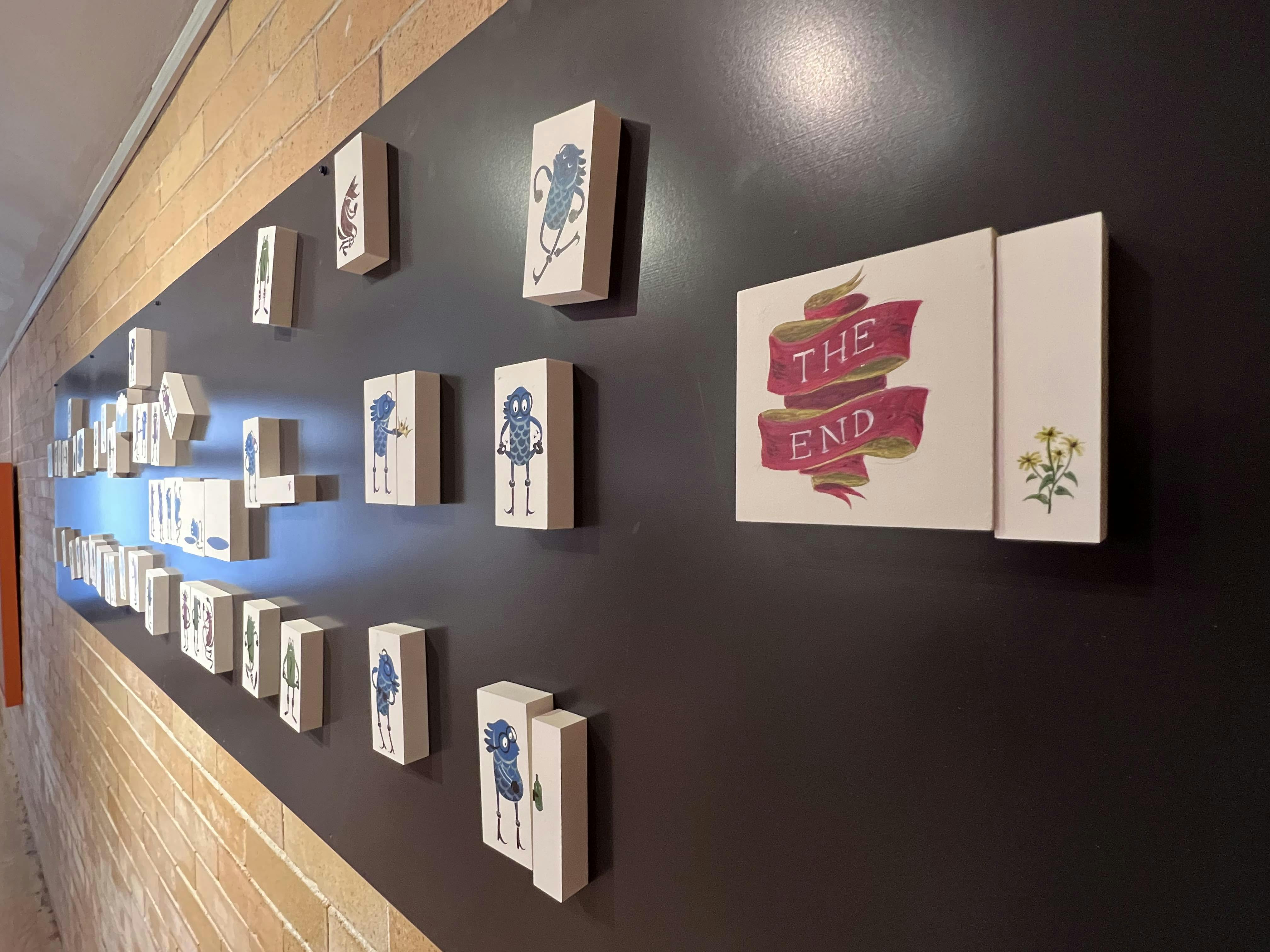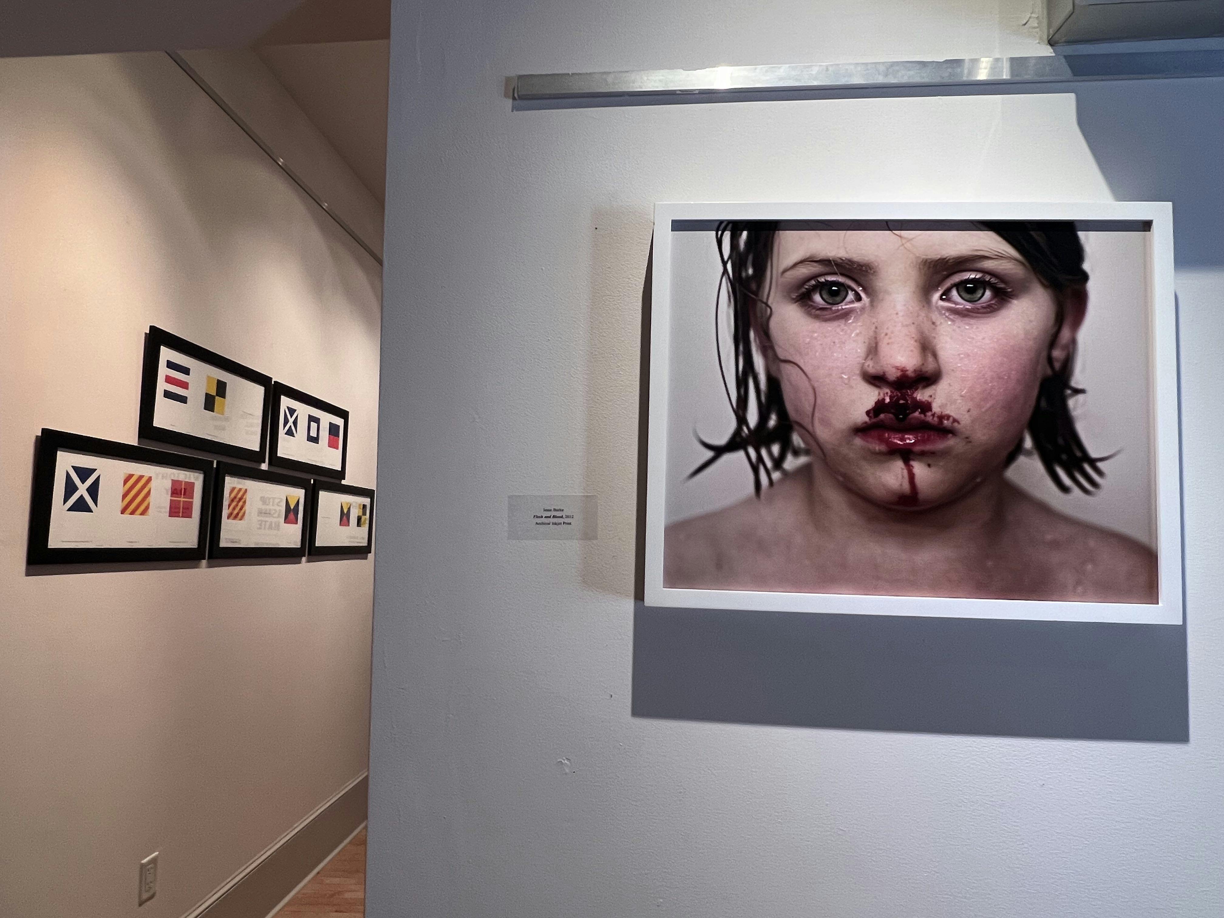 Just off the lobby in the museum’s smaller gallery space, there is an interactive display by artist Matt Kemp, which invites viewers to create stories using blocks featuring characters on their surfaces. An engaging artwork for kids and families, it also allows adult art enthusiasts to participate in an artwork in an unexpected way. Photographs make up a large portion of Shift and alongside Kemp’s installation, works by photographer Jesse Burke are on view. One image of a child with a bloodied nose is particularly eye-catching.