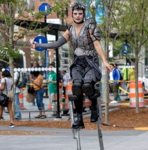 On Saturday and Sunday, PVDFest visitors will encounter “Cycle Sonic,” a spectacular art-rock performance on human-powered stages by Philadelphia-based festival veterans SQUONK OPERA. This pageant of double-decker bike stages is propelled by original chamber rock music and celebrates all things bicycle in a city where bikes are a part of the local culture. Giant animated bikers circle the audience in front of undulating flags, with 20-foot legs pumping to the rhythm of sustainable power. With no carbon footprint, “Cycle Sonic” combines the thrill of a live concert with the world of everyday transit.