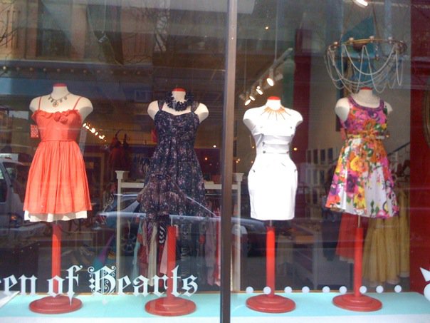 Queen of Hearts began as a series of holiday pop-up shops in 2004, the idea of Karen Beebe and Devon King. The mini shops were well received, and in 2006 Beebe and King moved the store to a permanent location on Union Street (just down the street from Tazza Café). Beebe took over the boutique in 2007, and in March the store moved to its current location on Westminster, where it is currently nestled among similarly hip stores like Oop!, Heir Antiques, Calico, and Craftland.