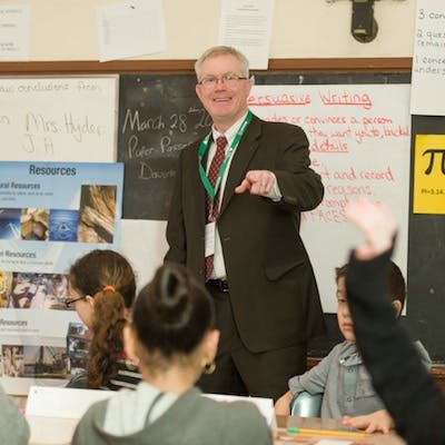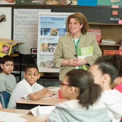 JA Chairman of the Board Rick Simone, vice president of events & special projects at Alex and Ani, talks to students about earning and saving as part of JA’s elementary education programs.