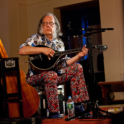 In between amusing stories on topics ranging from Warren Zevon’s guns to his stint in the 1960’s as a Disneyland musician, Lindley took those assembled on a magical tour of stringed instruments including a Turkish oud, a rare Wiessenborn lap guitar, and his bouzouki, an 8 stringed Greek instrument that doubles as a five string banjo.