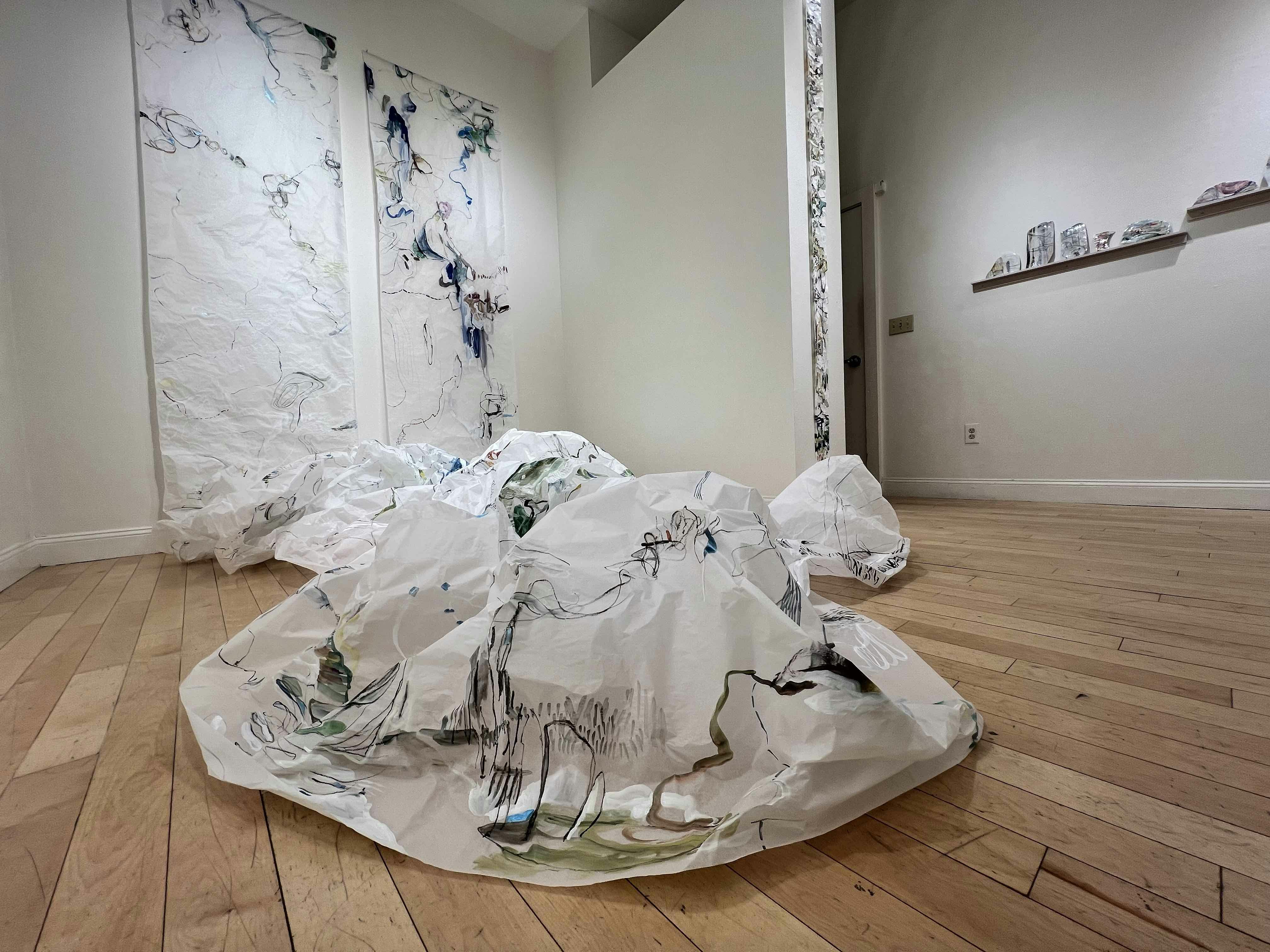 At the heart of the show is a sweeping set of drawings that spill into a vast pile onto the floor, alongside which are exhibited elongated drawings that show off a fine eye for abstraction and movement. In addition, ceramic shards with wonderful drawing qualities of their own are on display. Taken together, the collection is something remarkable.