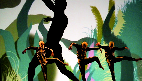 Hapless Hooligan played in and out of the scrimmed world of Art Speigelman's pen and ink storytelling, relying nearly exclusively on the shapes of the dancers, silhouetted in fantastic settings.
