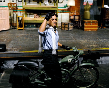 It makes one wonder how much more could have been mined from this rich territory, particularly given that the show opens with a newsreel projected onto a bedsheet screen. Imagery from England - pungent parallels to our own path of coronations of sorts, wars, and yearning for simpler days - could have returned and accented, heightened, moments in the show. But the set, for the most part, plays only its most basic service to the story.