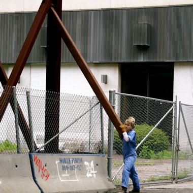 “Yes it is what it looks like, I am supporting the building!” Johnson responded to an intrigued passerby. The RISD student provided support by holding up a piece of foam, camouflaged as a steel beam, from 11am through 1:30pm to draw attention to the property.