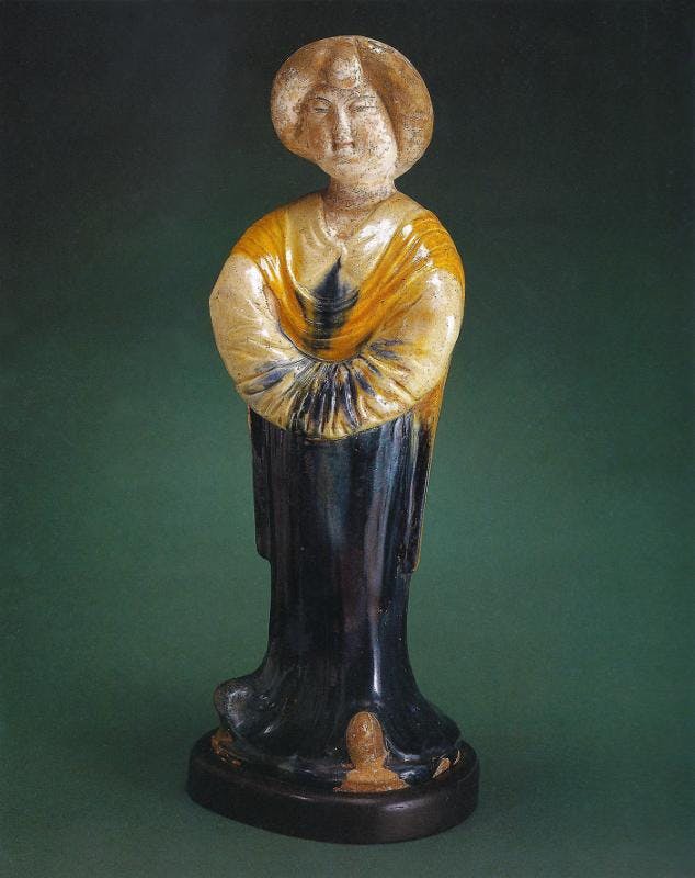 The promised gift also includes a pair of elaborately carved gilded mirrors in the Rococo style, measuring a monumental height of more than seven and a half feet; a pair of George I burr walnut armchairs, each with a tapestry seat and five cabriole legs; a pair of brilliantly hued Korean wedding chests with detailed paintings of various animals, representing Daoist, Confucian, and folk symbolism; and a Tang dynasty figure of a standing court lady, featuring a rare deep blue glaze. This eighth-century ceramic figure was a prized possession of Mr. Rockefeller's mother, and was later displayed in Mr. Rockefeller's office at 30 Rockefeller Plaza.