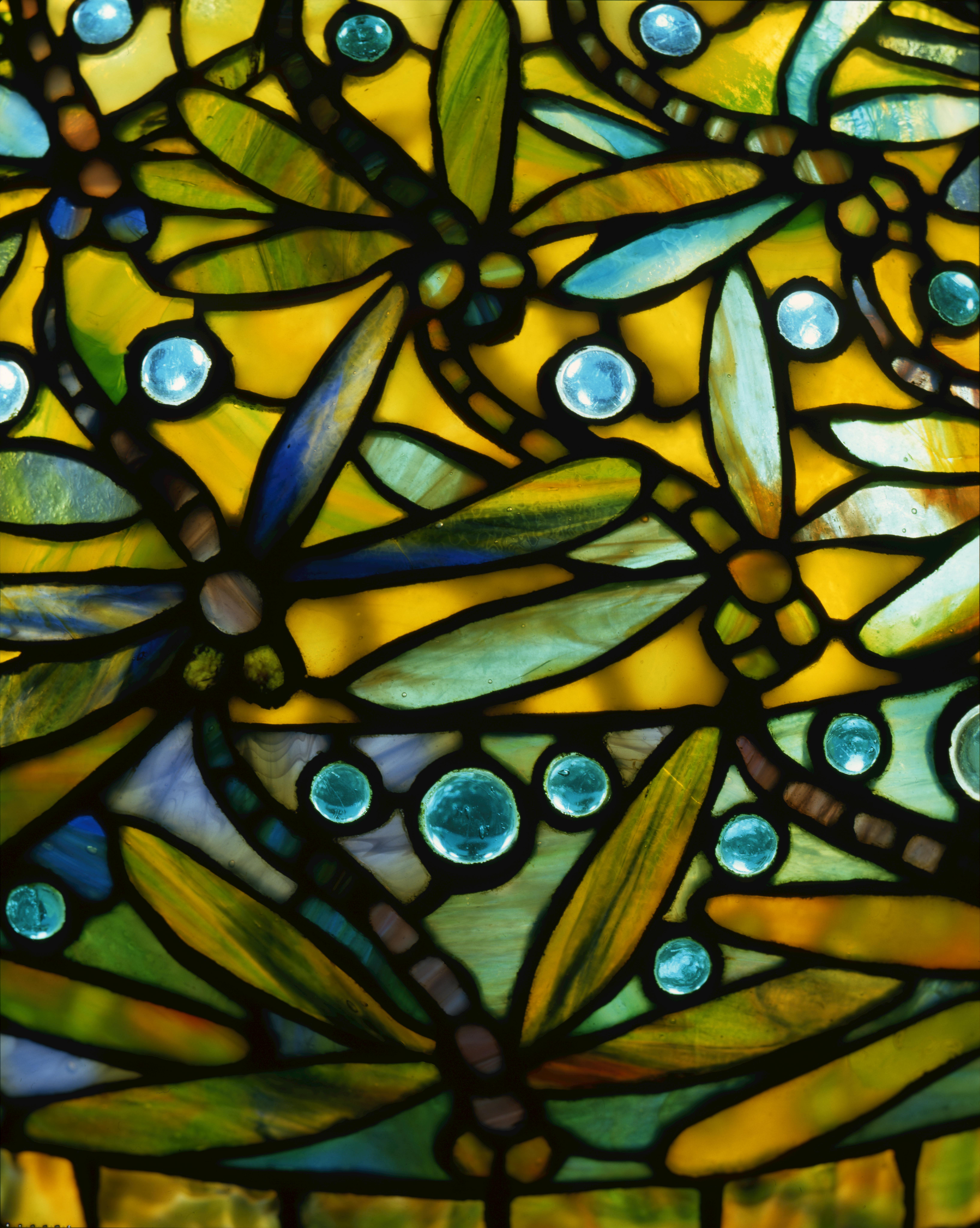 His Tiffany Studios created leaded-glass windows and lampshades in vibrant colors and richly varied patterns, textures and opacities.