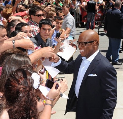 GET THE LATEST BREAKING NEWS HERE -- SIGN UP FOR GOLOCAL FREE DAILY EBLASTKeeping up with the women, judge LA Reid was mobbed on his way into the Dunk. Photo: The X Factor USASpears, new to the show, had an exciting week, and it wasn't just because she grabbed everyone's attention with that Herve Leger by Max Azria red bandage dress--Simon stole her scooter, Reid gave her a smooch, and Spears ultimately became BFFs with Reid, according to both celebrities' tweets. Spears also caught on to how to give Cowell-ish judging advice--"it's like your voice is wicked in a good way," she offered one contestant. The star, who arguably received the loudest screams from the audience, spoke with a tiny voice somewhat difficult to differentiate from Lovato's. But one thing is for sure--the star uttered a hard and short "no" to a group of three who shrieked her hit song "Toxic."