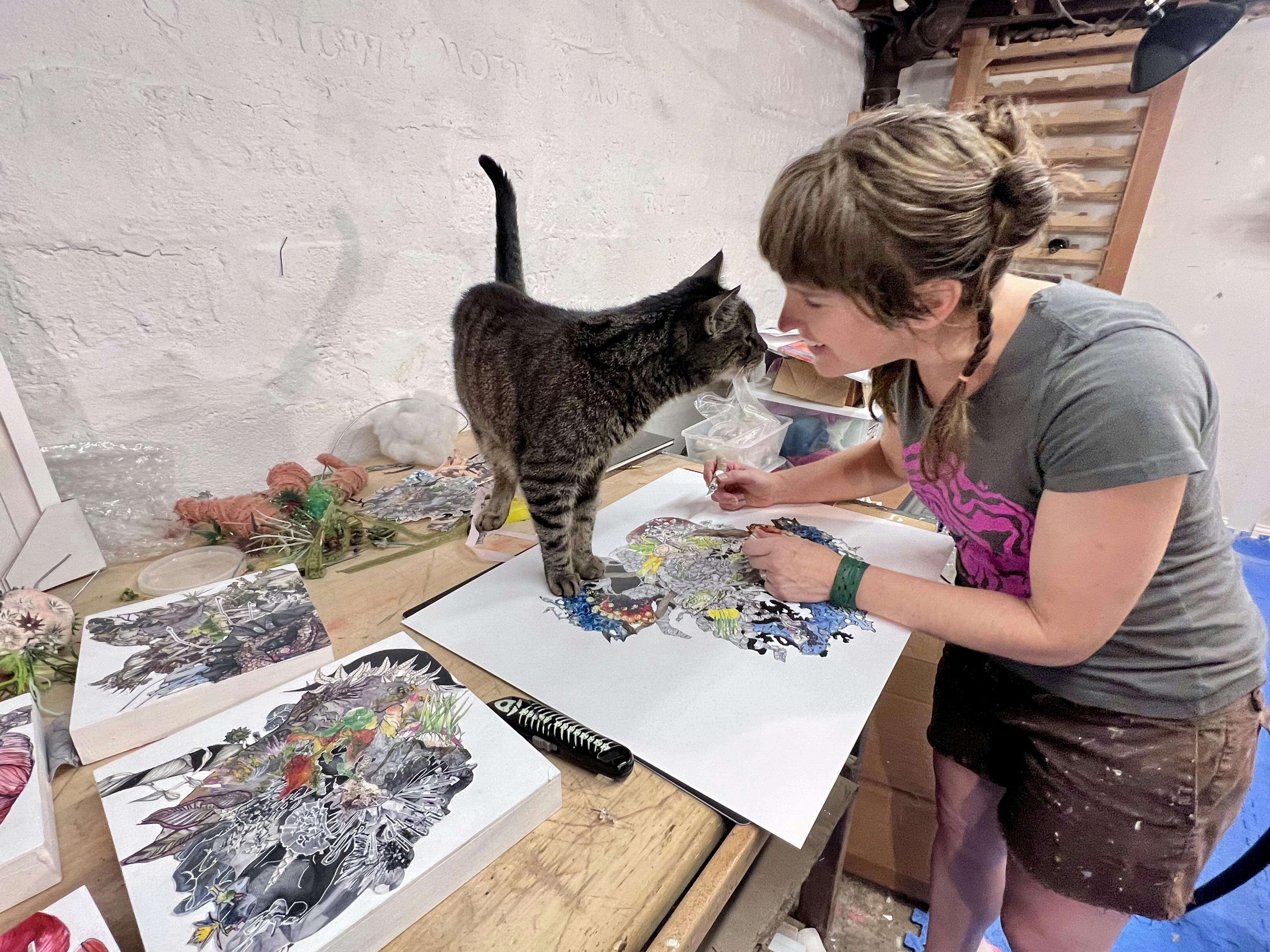 For many artists, curatorial work comes as second nature. Alicia Renadette is one Rhode Islander whose career spans both the making of art and the shaping of exhibitions. From a cozy studio in the basement of her home in Smith Hill, Renadette constructs collages and sculptural work that are full of details and intimacy. From August 2 - September 10, she will share some of her exciting recent work alongside her friend Maggie Nowinski in the exhibition “Exquisite Variants” at Overlap Gallery in Newport, where the multitalented Renadette also serves as Gallery Director.