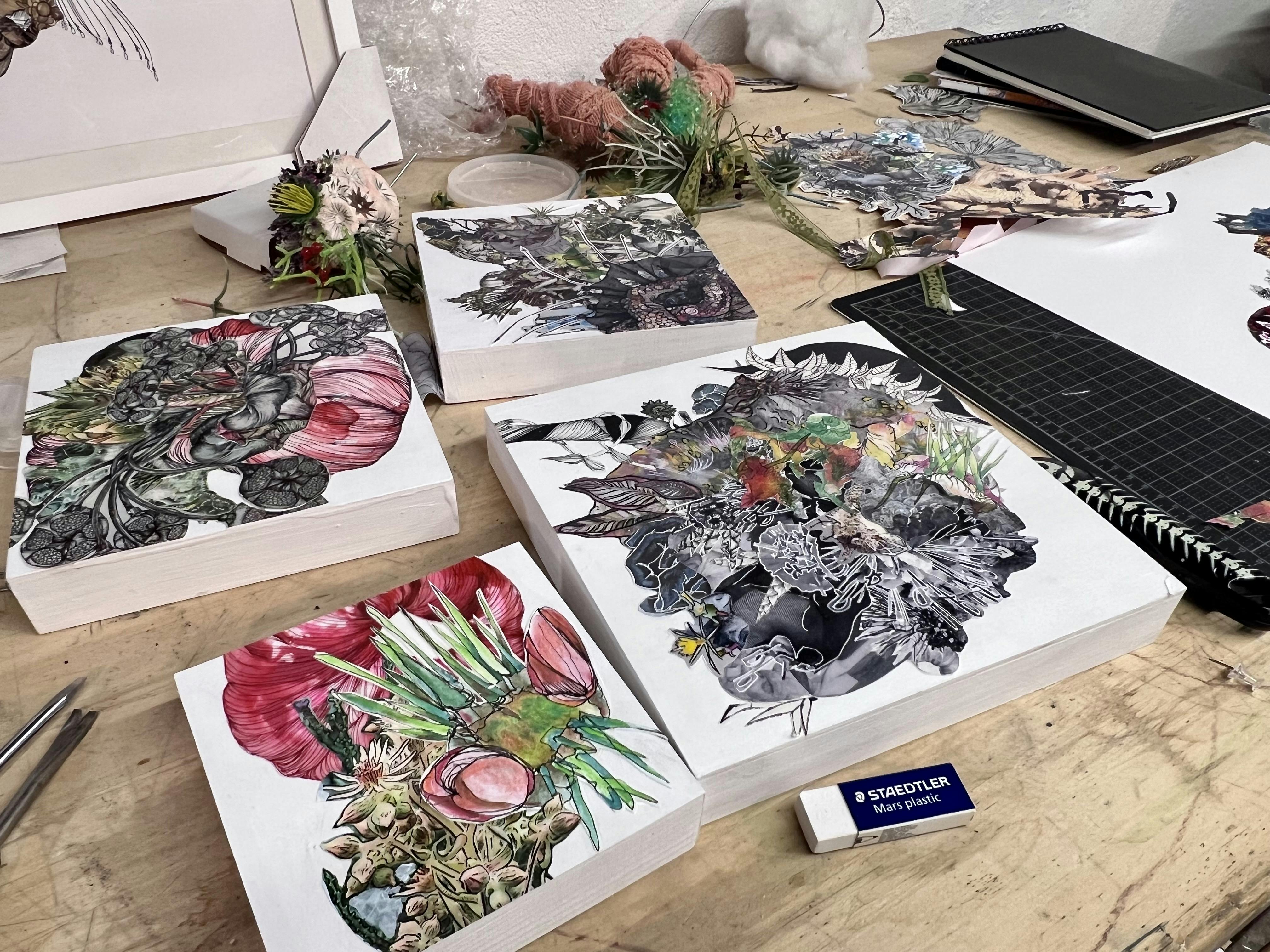 Speaking about her excitement to show alongside Nowinski, Renadette says, “I love exhibiting with Maggie- she's one of my dearest friends and one of my favorite artists. Our relationship grew out of conversations around art, studio visits, and long walks in nature when I was living in Western Massachusetts. We've had a very deep connection and making this body of work has kept us tethered from a distance since I've moved to Rhode Island. We will be showing a selection of our own individual pieces, alongside collaborative works, including a mixed-media installation, collages on panel, and framed drawings- all of which reference and/or replicate imagery from the solo work.”