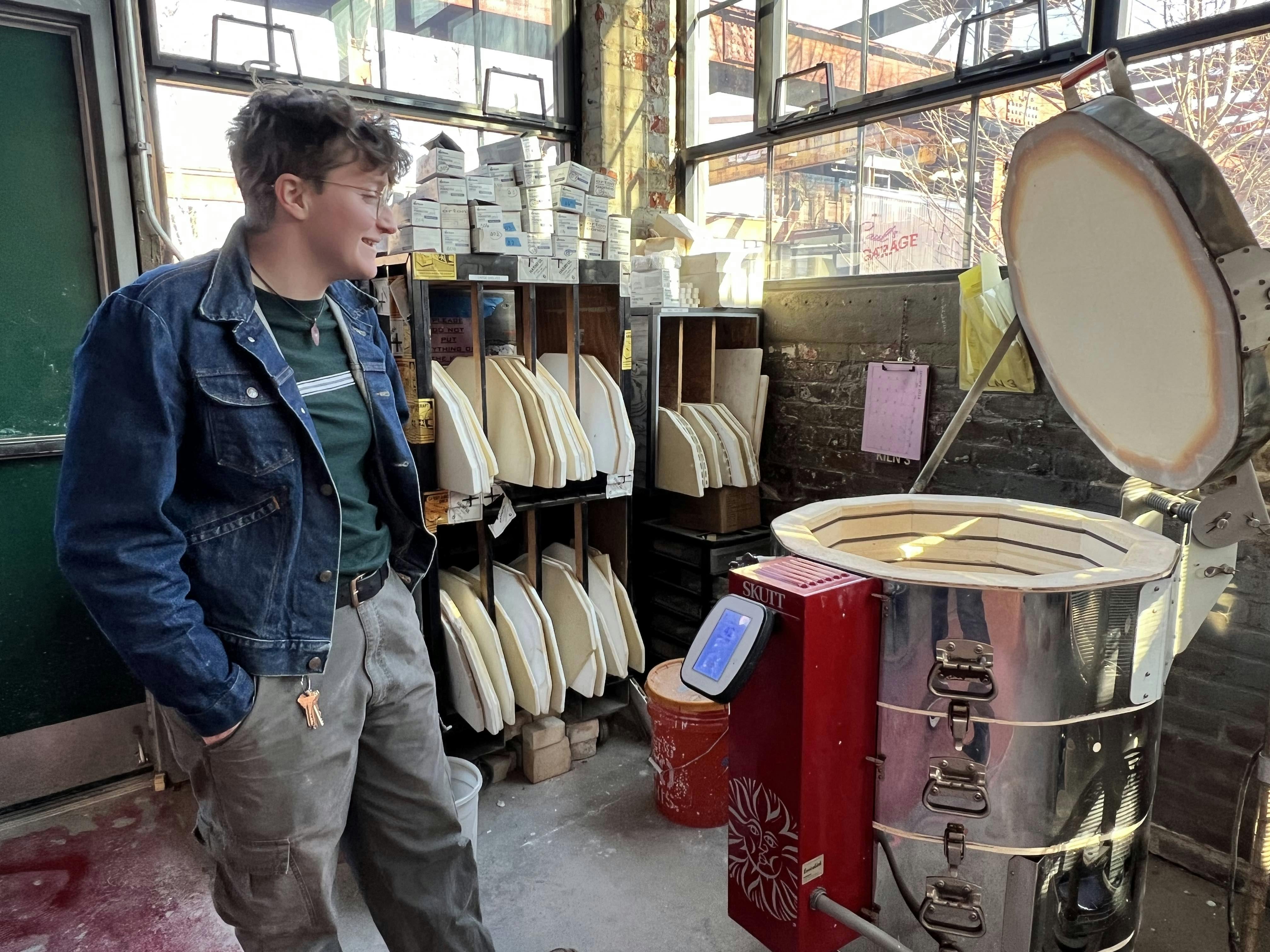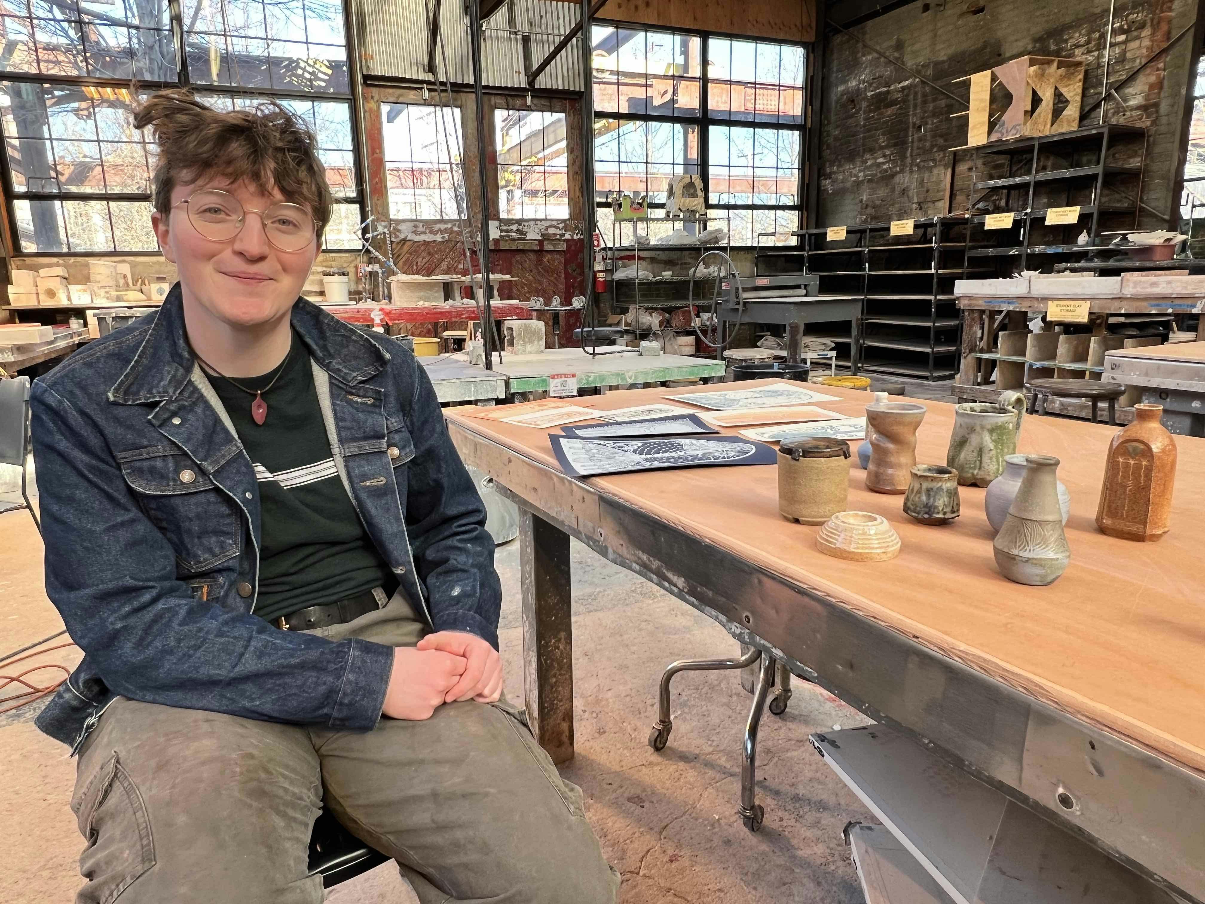 Originally from San Jose, California, Cassell came to the region to study at the Rhode Island School of Design, where she obtained her BFA in Furniture Design in 2019. Her journey since graduating from RISD has included explorations of materials as varied as metal, wood, ceramics, printmaking, painting, and stained glass. For three years she was a blacksmith at Iron Mountain Forge in Olneyville, where she worked on projects ranging from furniture to decorative metalwork. She now dedicates most of her time to the ceramic arts, but continues to explore other realms of expression with equal excitement and skill.