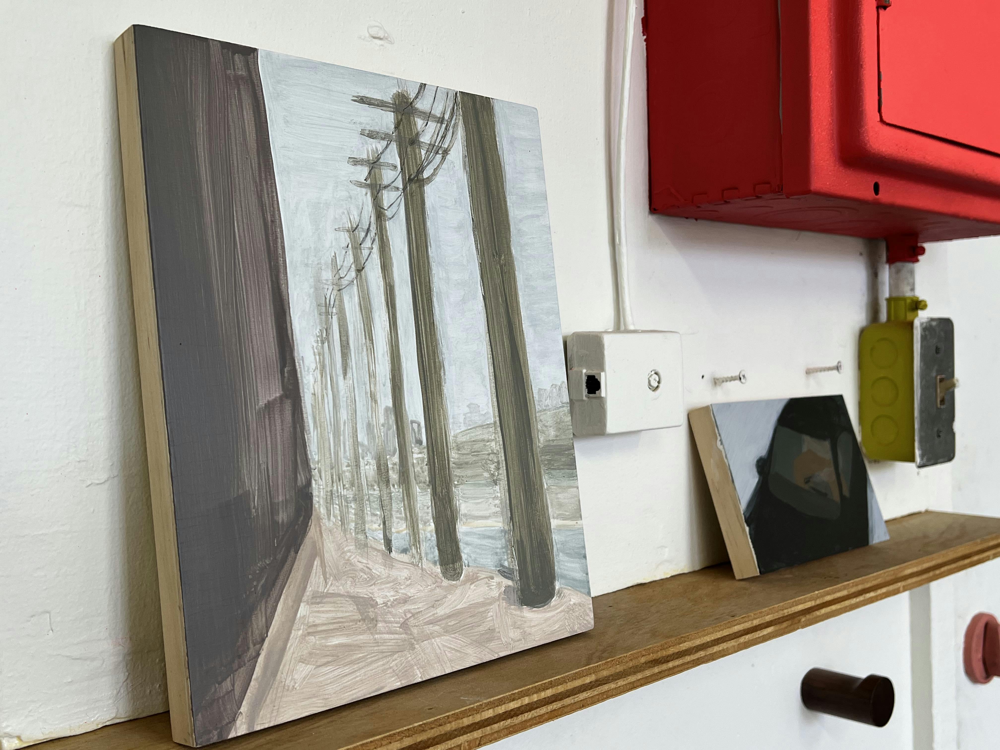 Reflecting on his new studio at a converted mill in the Valley District, Morrison says, “It’s really exciting to have space to grow the work in a new way, and to be around other artists again after working from home following graduate school. I hope it helps to lay down some fresh roots within the larger creative community of RI! An extra perk is that the view and area are quite helpful for my work.”