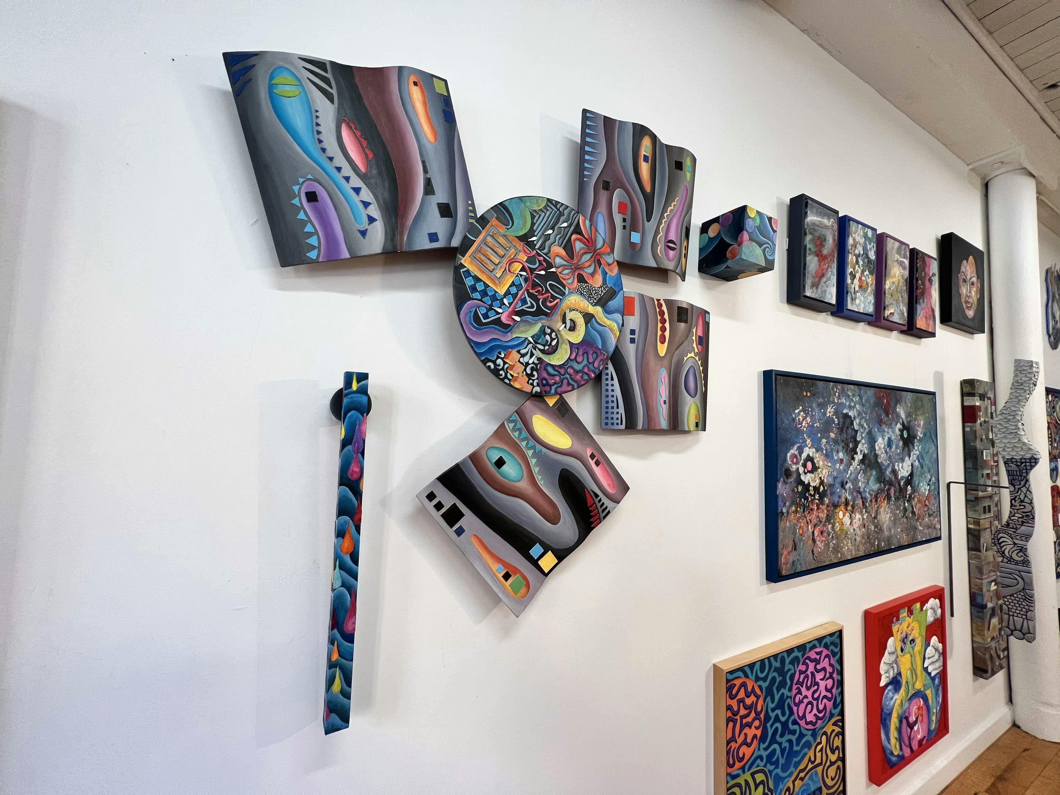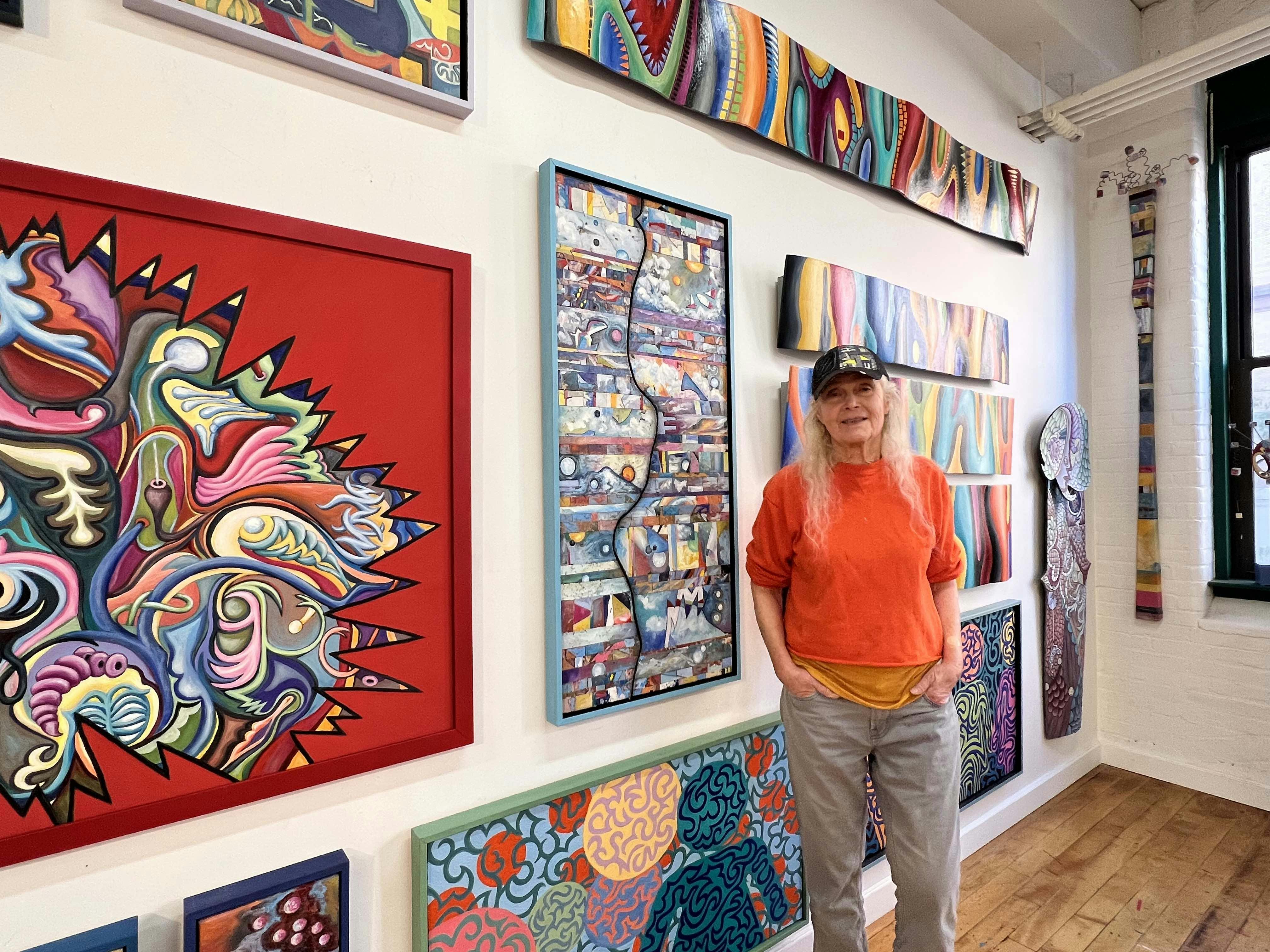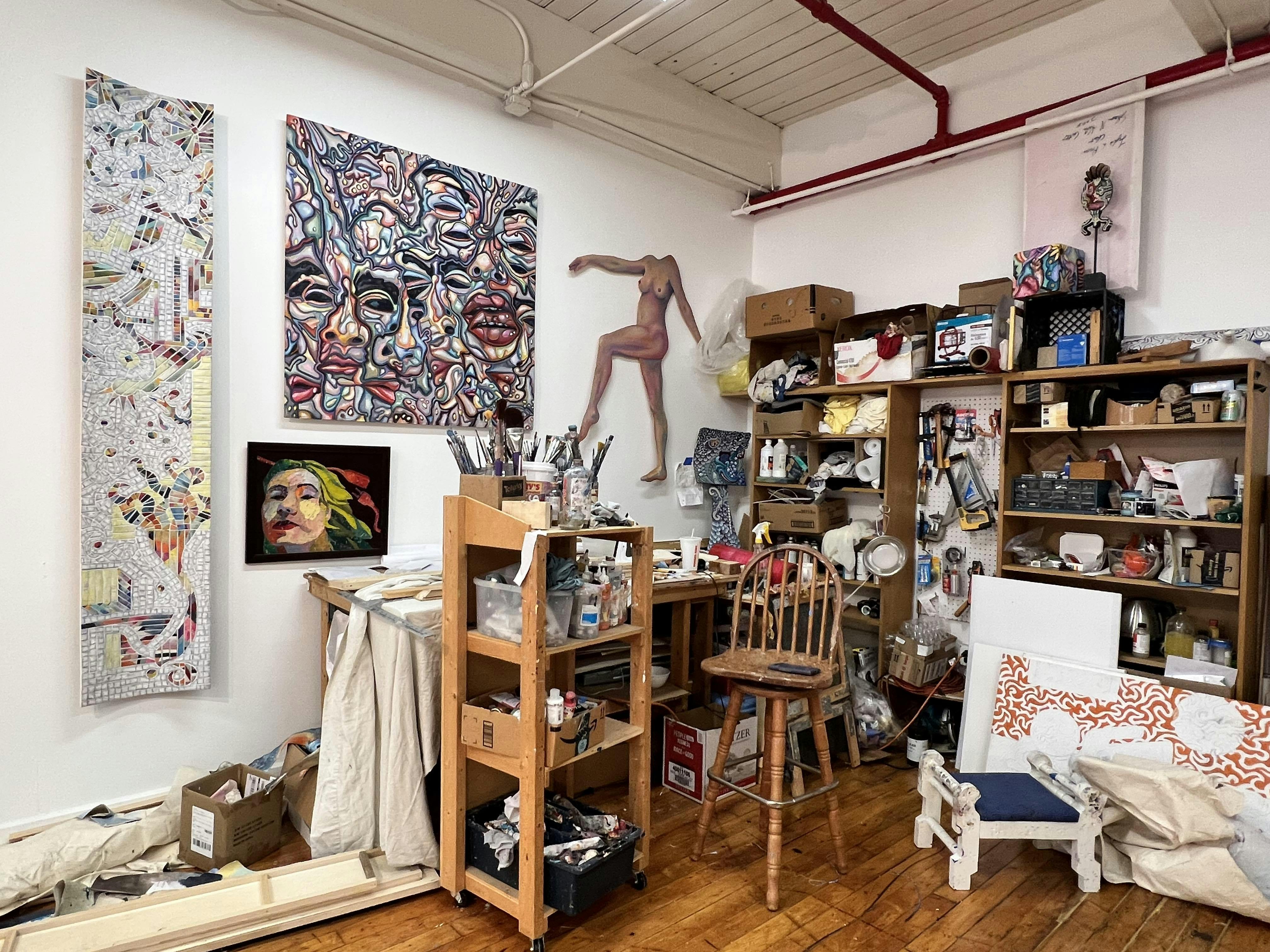 Some artists are extraordinarily productive, with minds always full of ideas and intentions. Sharon Cutts is one such individual, and from her Pawtucket studio is constantly producing inventive works that meld the fields of painting, mixed media, collage, sculpture, and canvas mosaics. She is an artist with a vision whose studio is a center of enthusiastic, creative production.