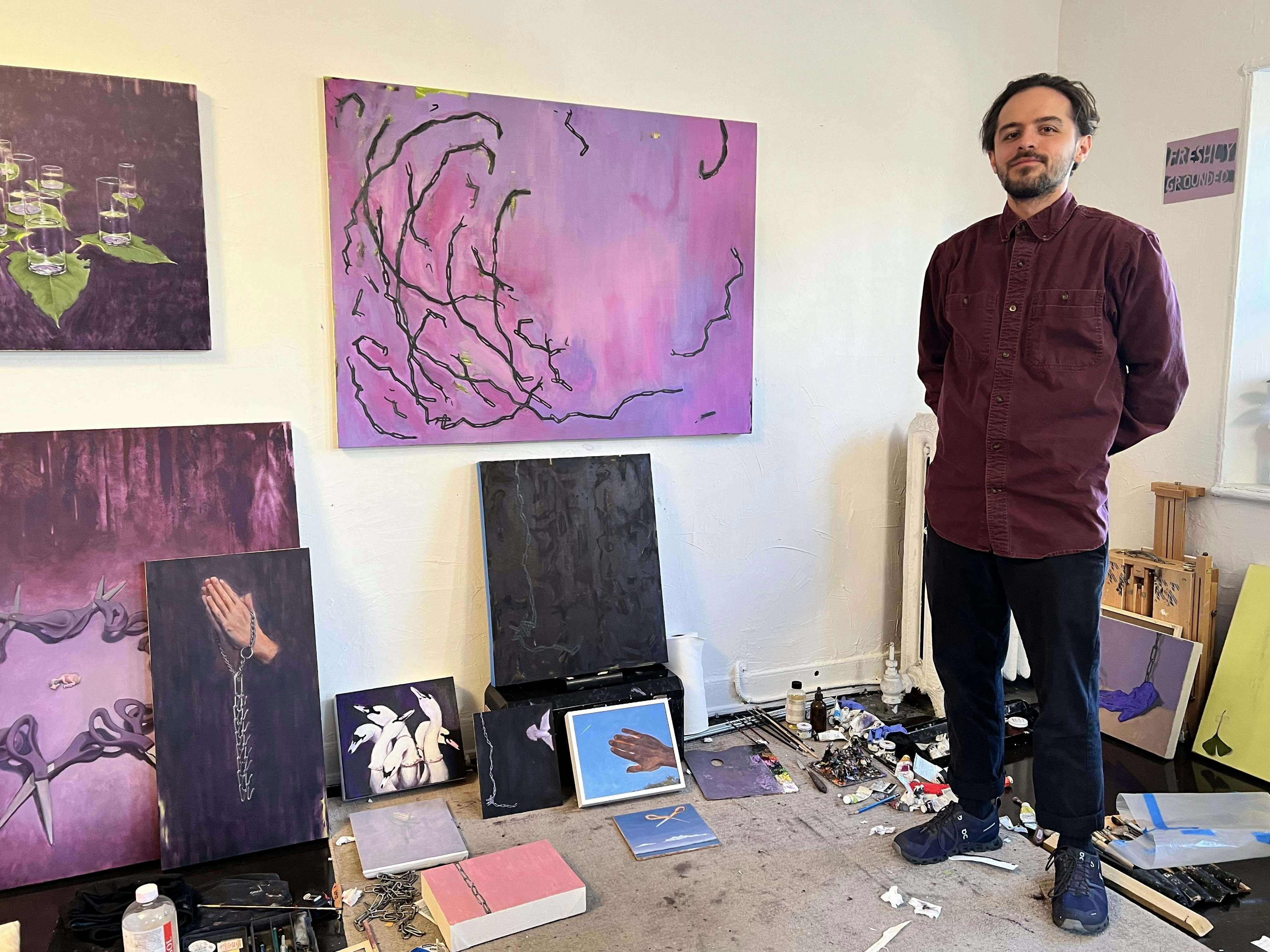 Originally from Houston, Texas, Napoli initially studied art at San Jacinto College before earning his BFA at the Maryland Institute College of Art in Baltimore. He went on to complete a residency at the New York Academy of Art before earning his Master’s Degree at the University of Massachusetts, Dartmouth, where he was a Graduate Teaching Fellow. Although a young artist, he already has a lot of achievements under his belt. In addition to his education, he was a finalist for the AXA Art Prize in 2022, earned a grant from the Elizabeth Greenshields Foundation in 2023, and was a resident at Chautauqua Visual Arts in 2024. He has cultivated a space for himself in the art community.