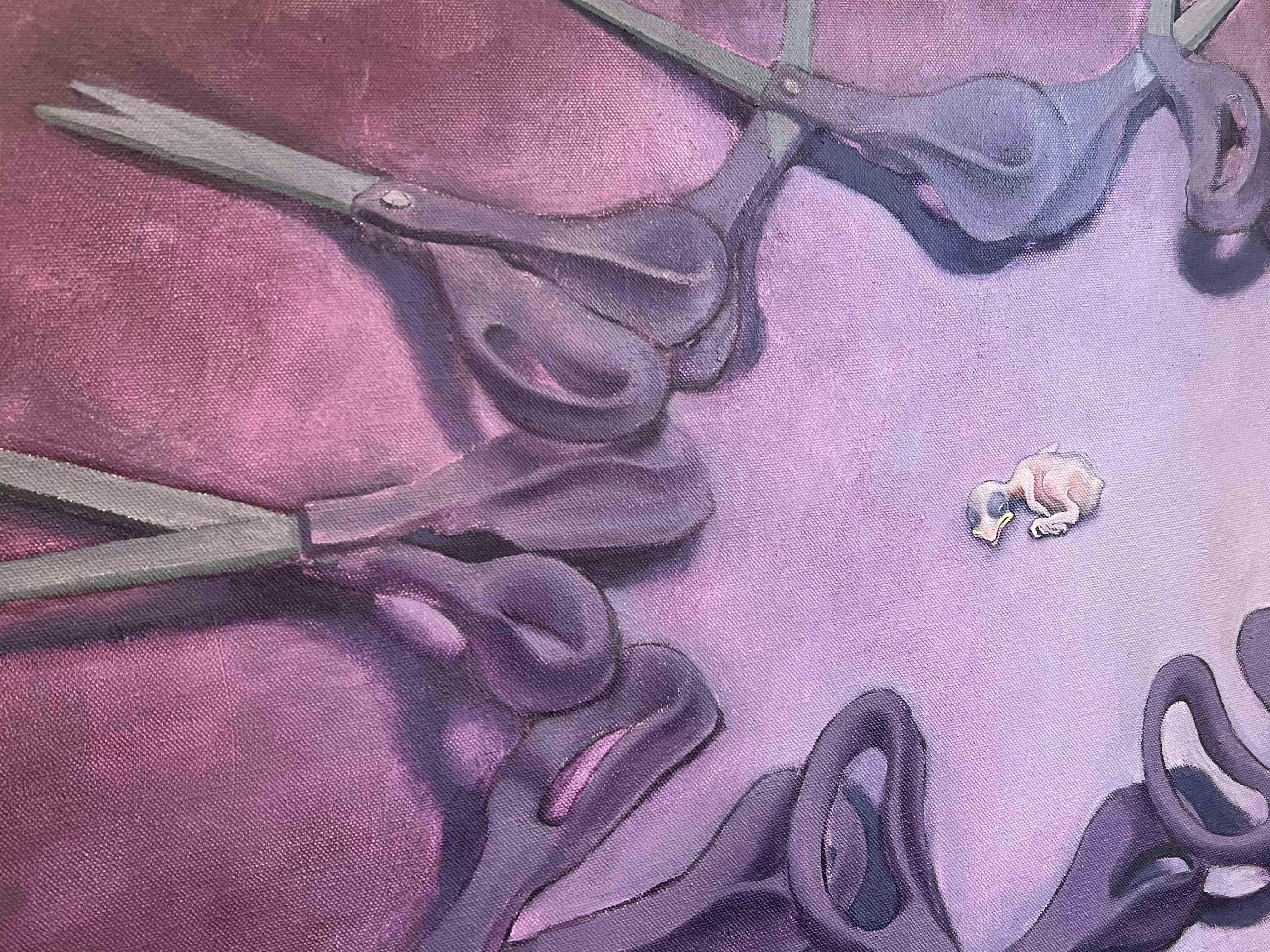 Napoli’s well-made paintings are rich in metaphor. Some of the elements that appear have broad resonance, while others are deeply connected to the artist’s own language and experience. Of his use of symbolism, the painter says, “I often depict objects which represent tension, restraint, or the threat of separation. Scissors indicate our ability to make change and the possibility of harm in misuse. Chains suggest being held back or bound. I hope that viewers find these feelings relevant to our cultural climate of separation, and remind us of our responsibility to use our tools and abilities in caring ways.”