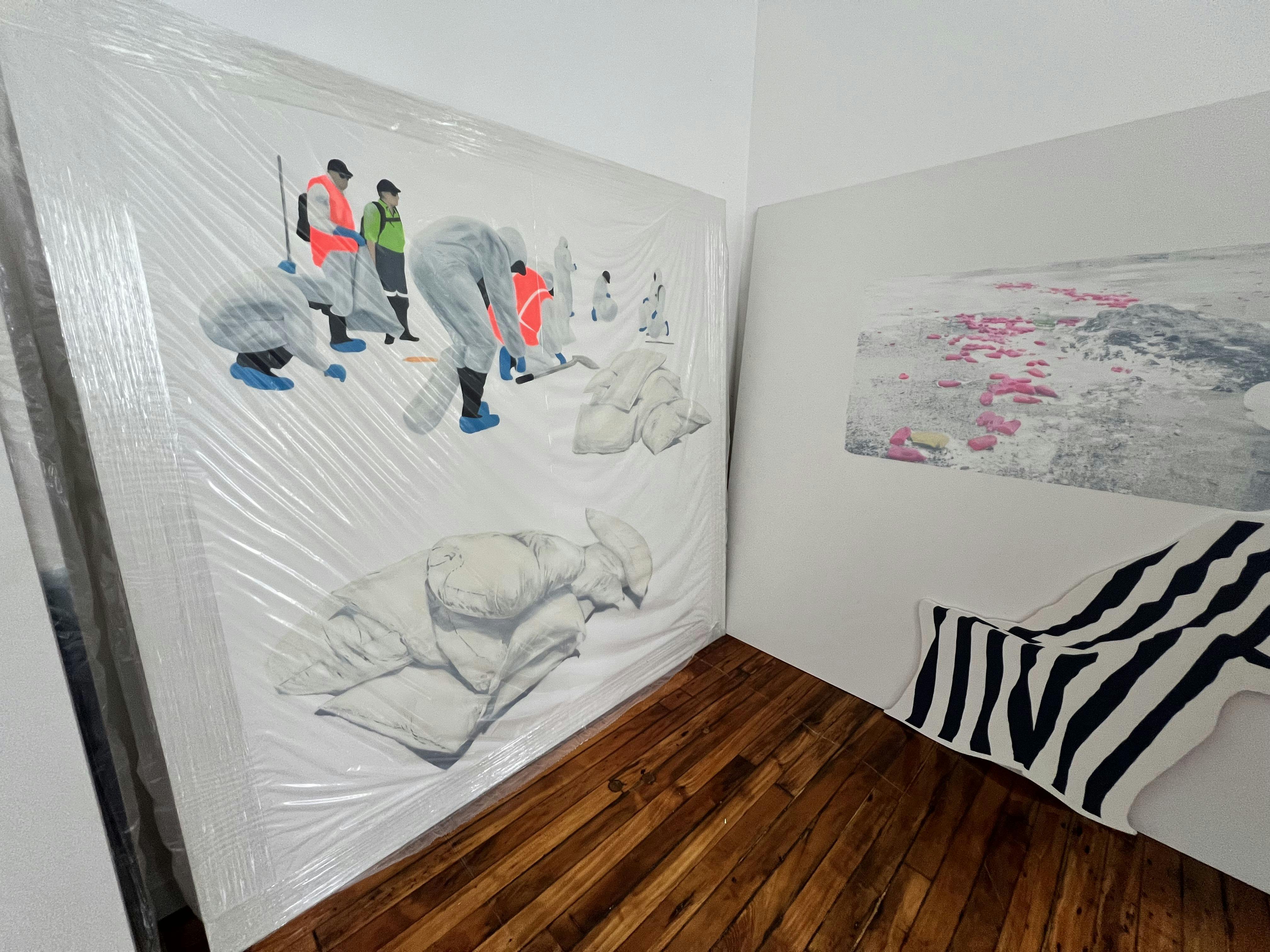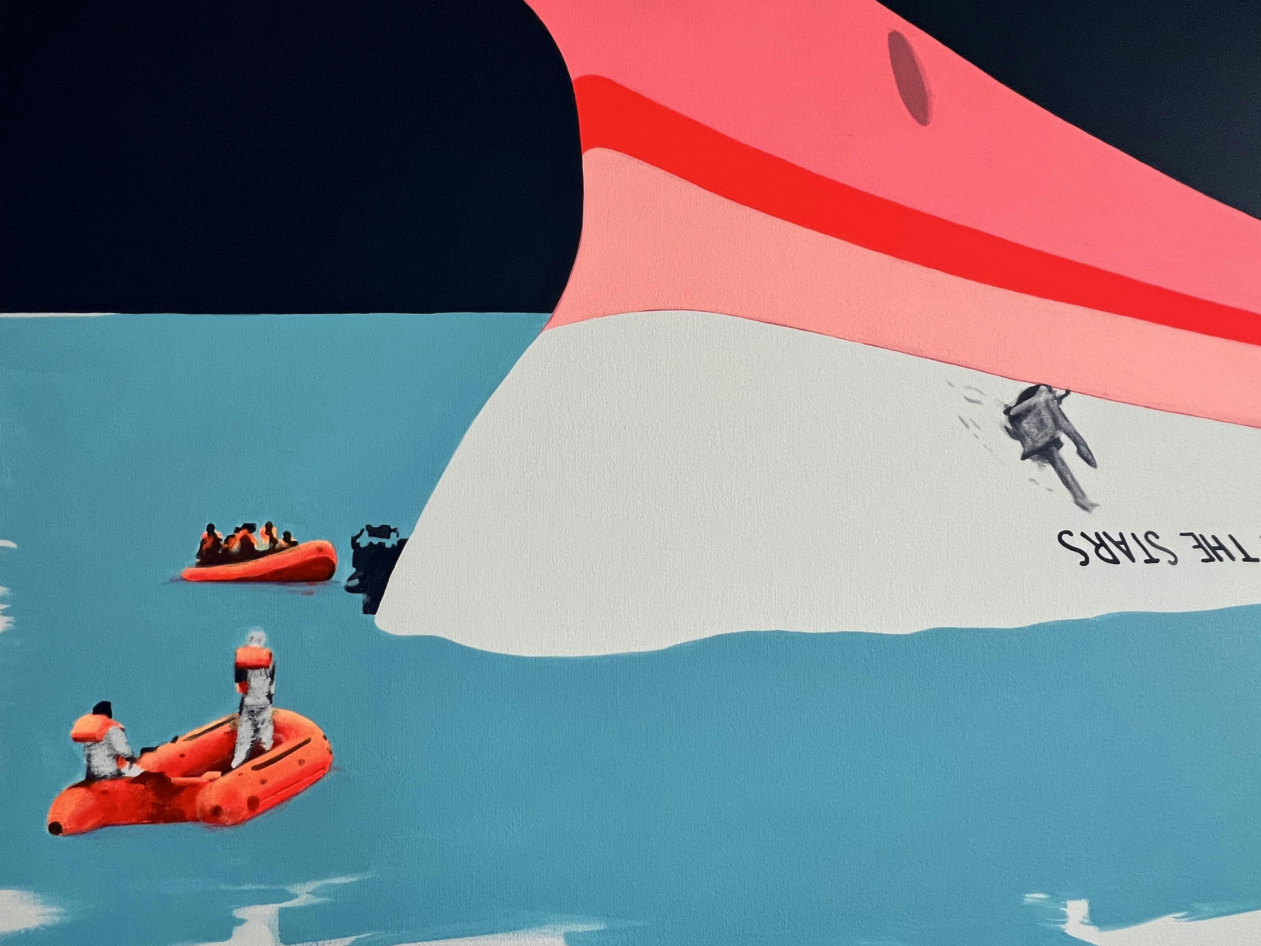Summing up what her solo show at Jessica Hagen’s gallery is all about, the artist puts it succinctly, stating, “SPF is about leisure and disaster meeting at the beach. Anything can happen – from sunburns to shipwrecks.”