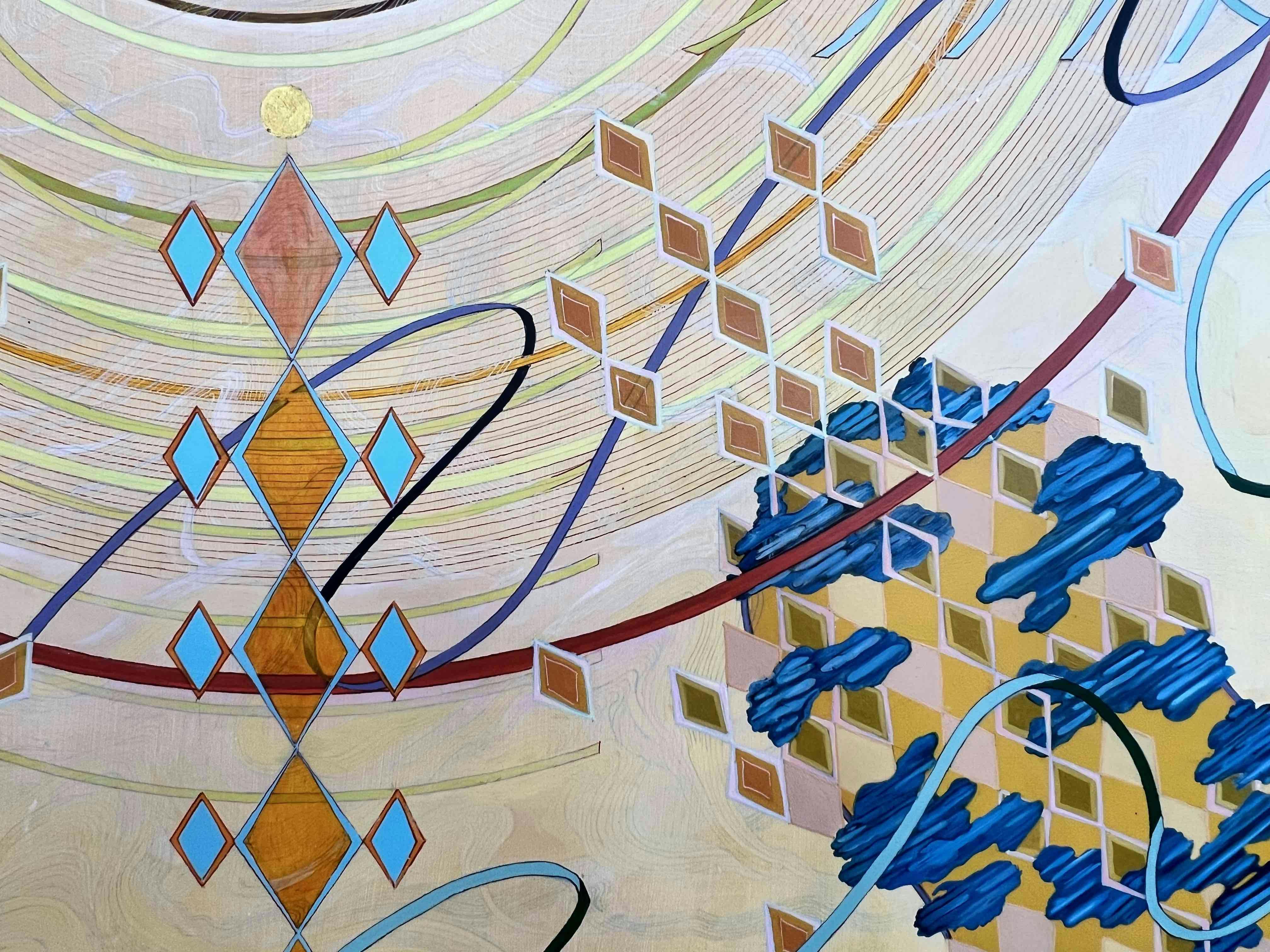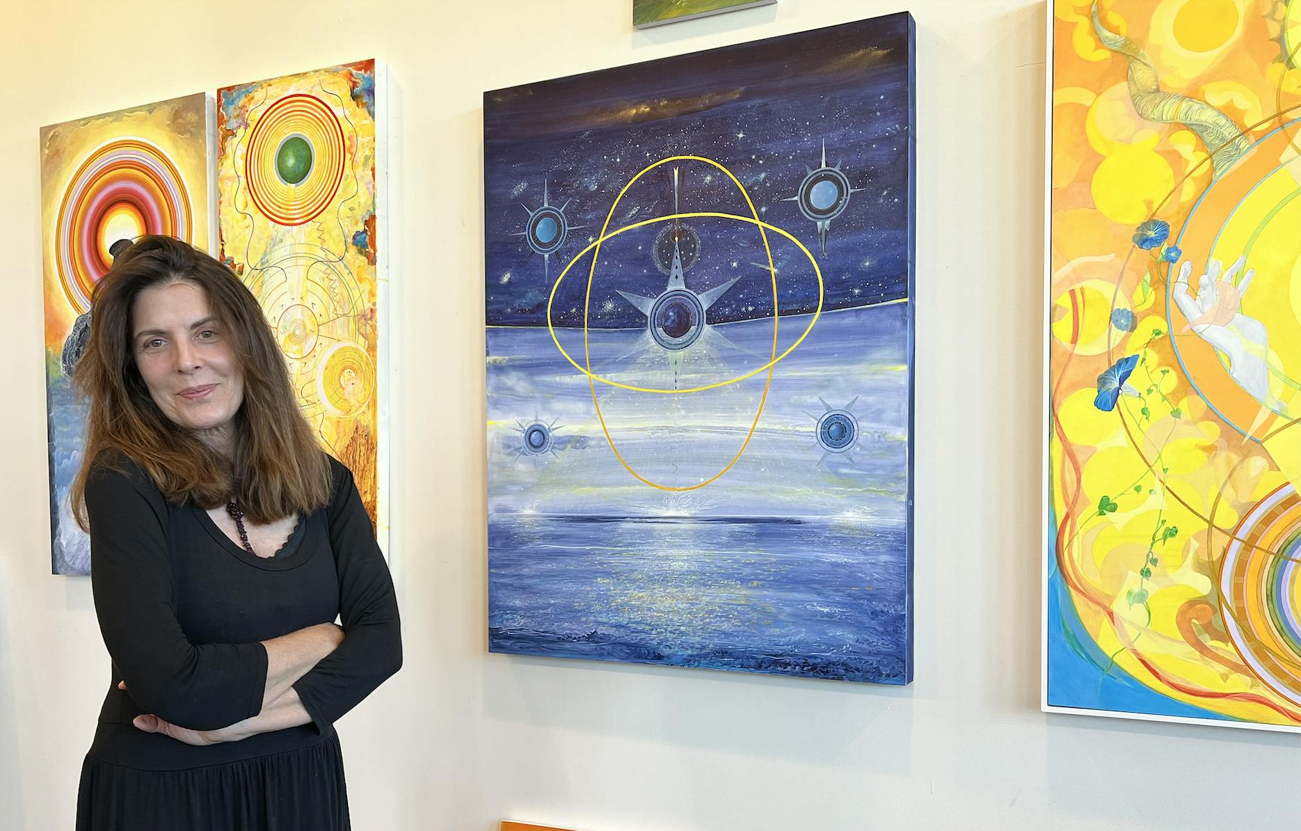 Ideas of the spiritual and the cosmic appear in many artists’ work, but multi-talented Rhode Island artist Tayo Heuser’s visual lexicon taps into this interest in a signature way. In recent paintings, Heuser leverages geometric forms and suggested spaces to probe her own interior life and give space to viewers to do the same. Later this fall, Heuser will exhibit alongside artist Jacqueline Ott at the Chazan Gallery at Wheeler School, giving viewers the chance to see her latest work.