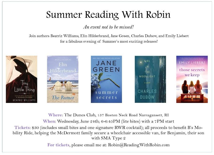 Summer Reading With Robin will be donating the proceeds from this event to B’s Mobility Ride. To learn about Benjamin and why we are raising funds, please watch this wonderful video put together by my friend, Kate De Petro.
