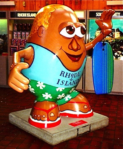Martin says he's always liked "cheesy roadside architecture and goofy public art." As an expert in RI iconography, he pondered the question of why Mr. Potato Head. "We could have had quahogs, or lighthouses, or sailboats," he said. "But someone had to pick up the tab to get this kind of thing rolling, and Hasbro had the moolah." As much many people hated them, Martin said, "kids loved them. Which is why so many lost their arms. Kids' appreciation of public art doesn't stop at mere contemplation. Kids must touch. And climb. And swing."
