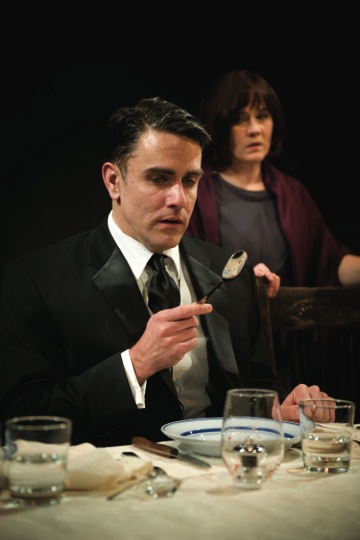 Is it a question of this cast having specific shortcomings, or is it something larger? Are American actors actually capable of embodying these kinds of tightly wound, repressed characters? It's interesting to note that Festen enjoyed a long run and critical success in London, but closed quickly in New York. And while the Gamm's cast is somewhat uneven, it's hard to imagine even the brightest American talent conquering this particular drama. With broad vowels and overt inclination, the American actor best inhabits the drama of slow boil to explosion. Our homegrown tragedies tend to blow off a family's doors, such as in the great works of Eugene O'Neill or Arthur Miller. Not keep them shut, as this play does.
