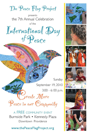 Make your peaceful family life a universal wish at Burnside Park in Downcity this weekend. The United Nations International Day of Peace in Providence is a free, family-friendly event that features entertainers, activities, and exhibitors reflecting RI's diverse communities. The event kicks off at 3pm, but stick around for a truly lovely highlight at 5pm - a silent Walking Meditation for Peace around Burnside Park. For more information, read here, and for more information about the Peace Flag Project, visit their Web site, here.