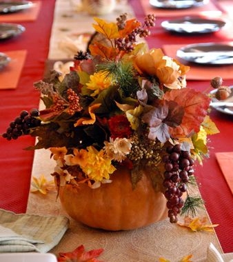Cozy lighting: Buy 3 or 5 (depending on table length and space) mini-pumpkins or acorn squash and hollow out the center and place a votive candle or tea light in the opening. Instant ambience!