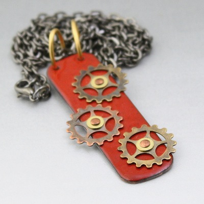 I love working with vintage findings, keys, gears, and various metals like copper, brass, or stainless steel and they give an overall industrial look to my jewelry.