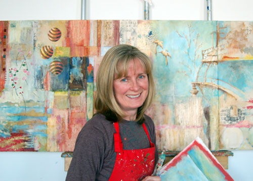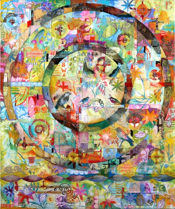 Space and environment. I have an incredible studio space in an old mill that is full of other artists and entrepreneurs. The large bright space enables me to work on lots of paintings at the same time as well as store the materials I use in my mixed media pieces: old wood and metal from construction sites to washed up finds from RI beaches. Also, being able to scull on the Seekonk River many mornings before going to the studio. I arrive calm and inspired after rowing; it is one of the greatest gifts Providence has to offer.