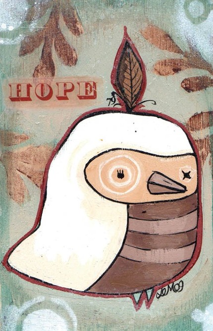 I think I'm a cross between a painter and an illustrator. Some people call it lowbrow art or urban art. It’s inspired by music, other artists, graffiti, street art, and patterns. Artists that have inspired me a great deal include Bjork, Tim Burton, Dr. Seuss, Jeff Soto, Edward Gorey, Barry Mcgee, Shepard Fairy, Blaine Fontana, Klimt, and Gama-Go. I like Juxtapoz magazine for the most part.