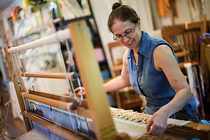 I became interested in textiles by watching handspinning at historic Sturbridge Village as a child. There was an old spinning wheel in my family that I practiced on to make yarn, which I later learned to knit. I was fascinated with the history of the textile mills and fabric production, of which we have so much in our area, and took a weaving course at Slater Mill in Pawtucket in the 1980s. After that it was just practice and patience which led me to a Master's of Science in Textiles from the University of RI in the 1990s and brought me to weaving full-time today in my own business.