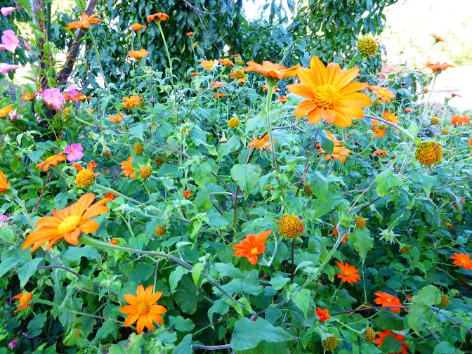 Save your seeds! Zinnias are among my favorite seeds to save. I believe without much thought or effort I’ve created a zany pallet simply because I favor taller pastel blooms. Like zinnias, tithonia or Mexican sunflower, a cousin to the zinnia, offers many blooms and freely forms seeds. I use large manila paper envelopes to contain the seeds. Gather on dry days. Keep at it. Cosmos, lunaria, marigolds, Four O’Clocks, Morning Glories and many others are yours for the keeping. Label and date your envelopes. The overgrown beans are ready for dry storage. Snip, snip, all the summer growth falls to the mulch. Baskets, lonesome stakes, resilient wire trellis’s, and a swathe of rough green parts radiates in forward from the past. Let go, move on.